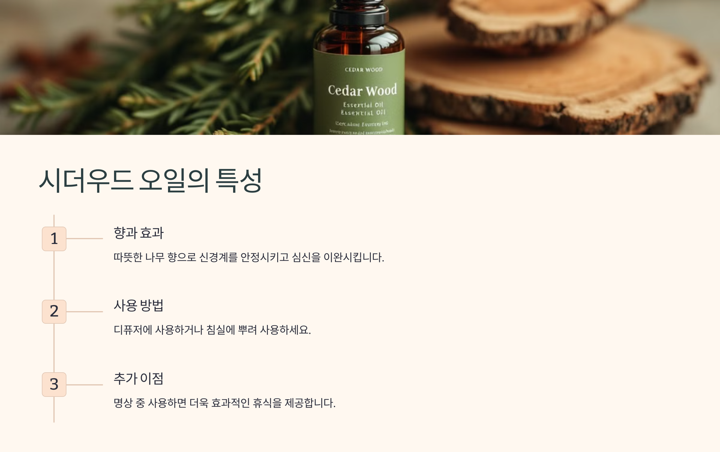 시더우드 오일은 따뜻하고 나무 향이 나는 에센셜 오일입니다.