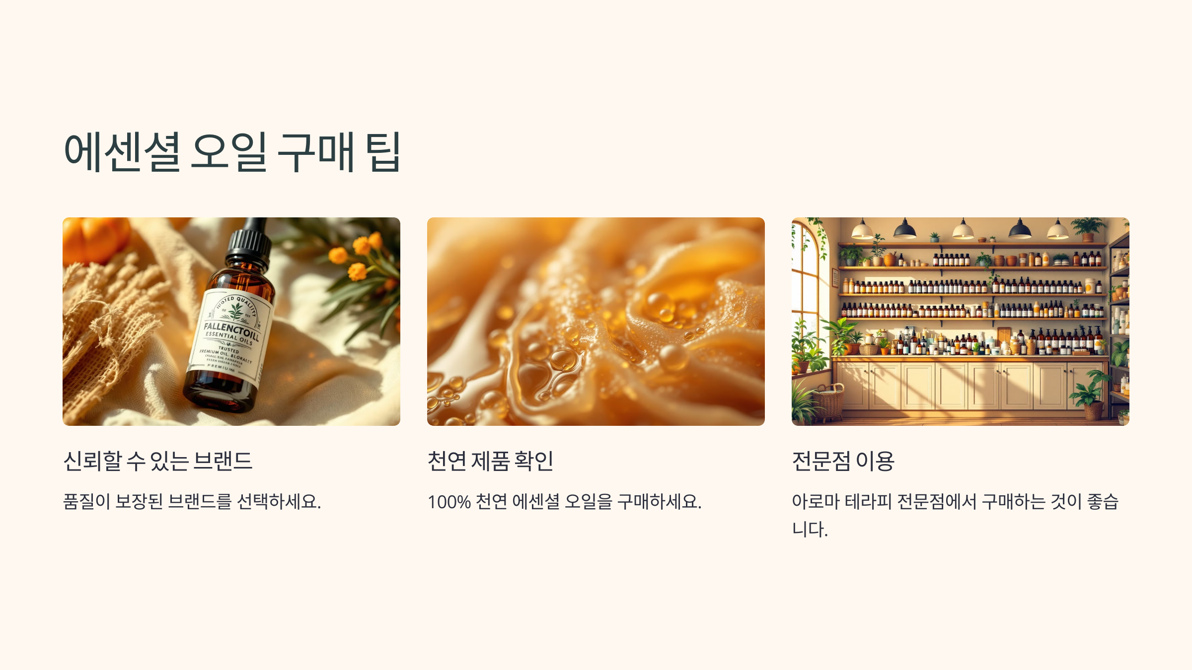 품질이 보장된 천연 에센셜 오일을 사용하는 것이 중요합니다.