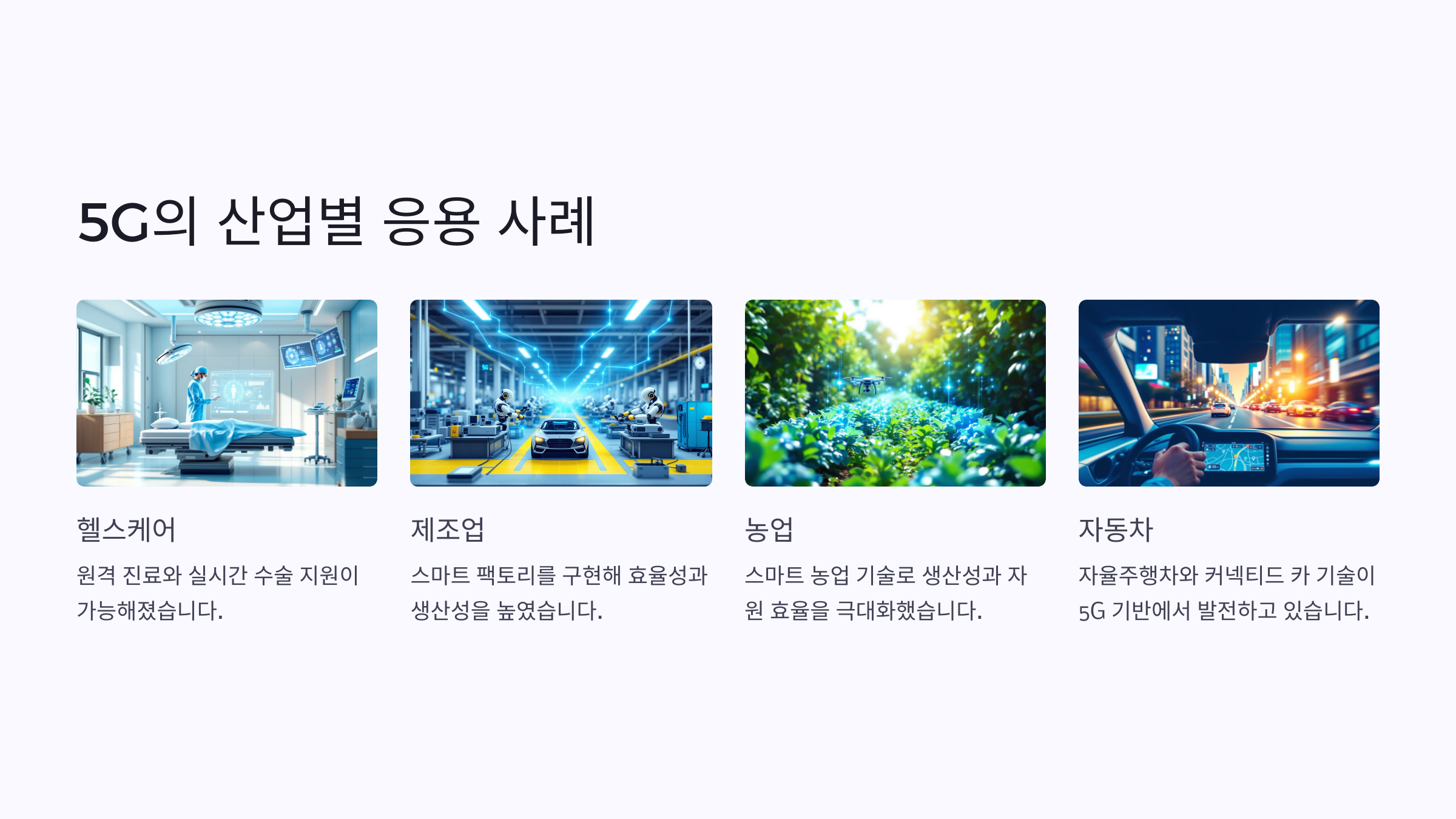 5G는 다양한 산업에서 혁신적인 변화를 이끌고 있습니다.