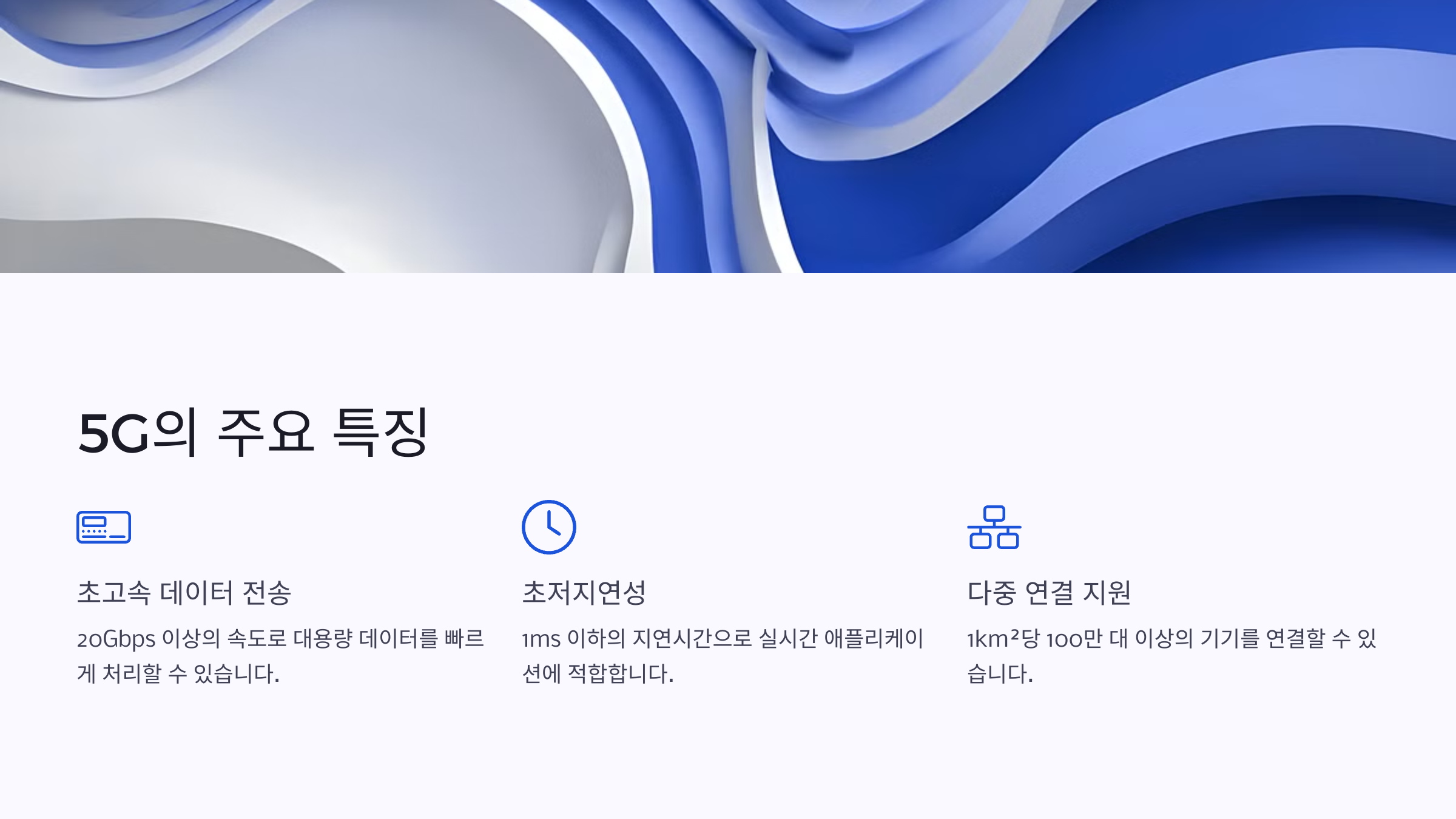 4G와 비교했을 때 최대 100배 빠른 속도를 제공하며, 다중 기기 연결에 적합한 기술입니다.