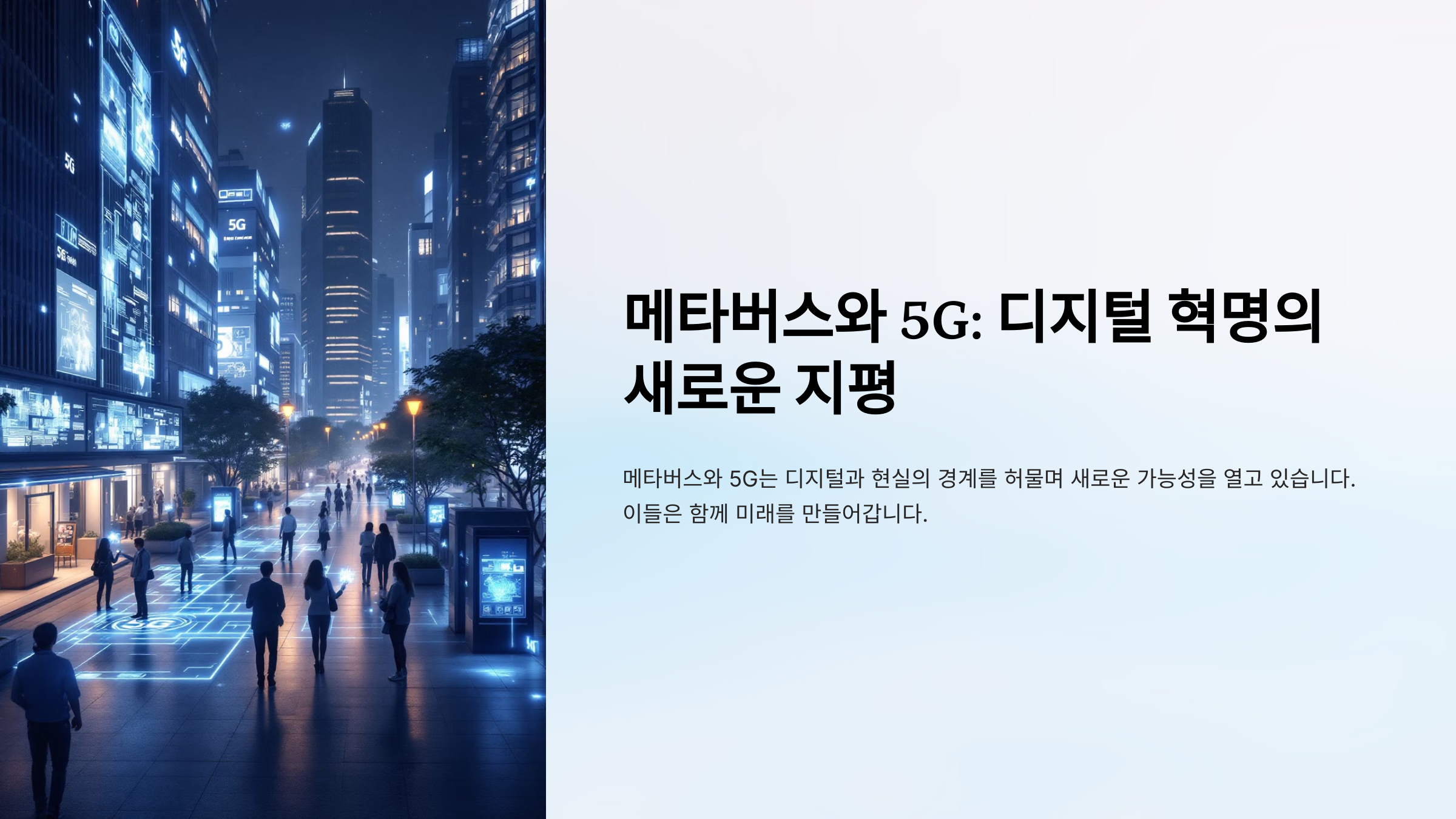 메타버스와 5G는 디지털과 현실의 경계를 허물며 새로운 가능성을 열고 있습니다. 메타버스는 가상현실(VR), 증강현실(AR), 혼합현실(MR) 등을 통합한 몰입형 디지털 환경으로, 5G 기술은 이를 실시간으로 구현할 수 있는 핵심적인 역할을 합니다. 본 글에서는 메타버스와 5G가 함께 만들어가는 미래를 탐구합니다.