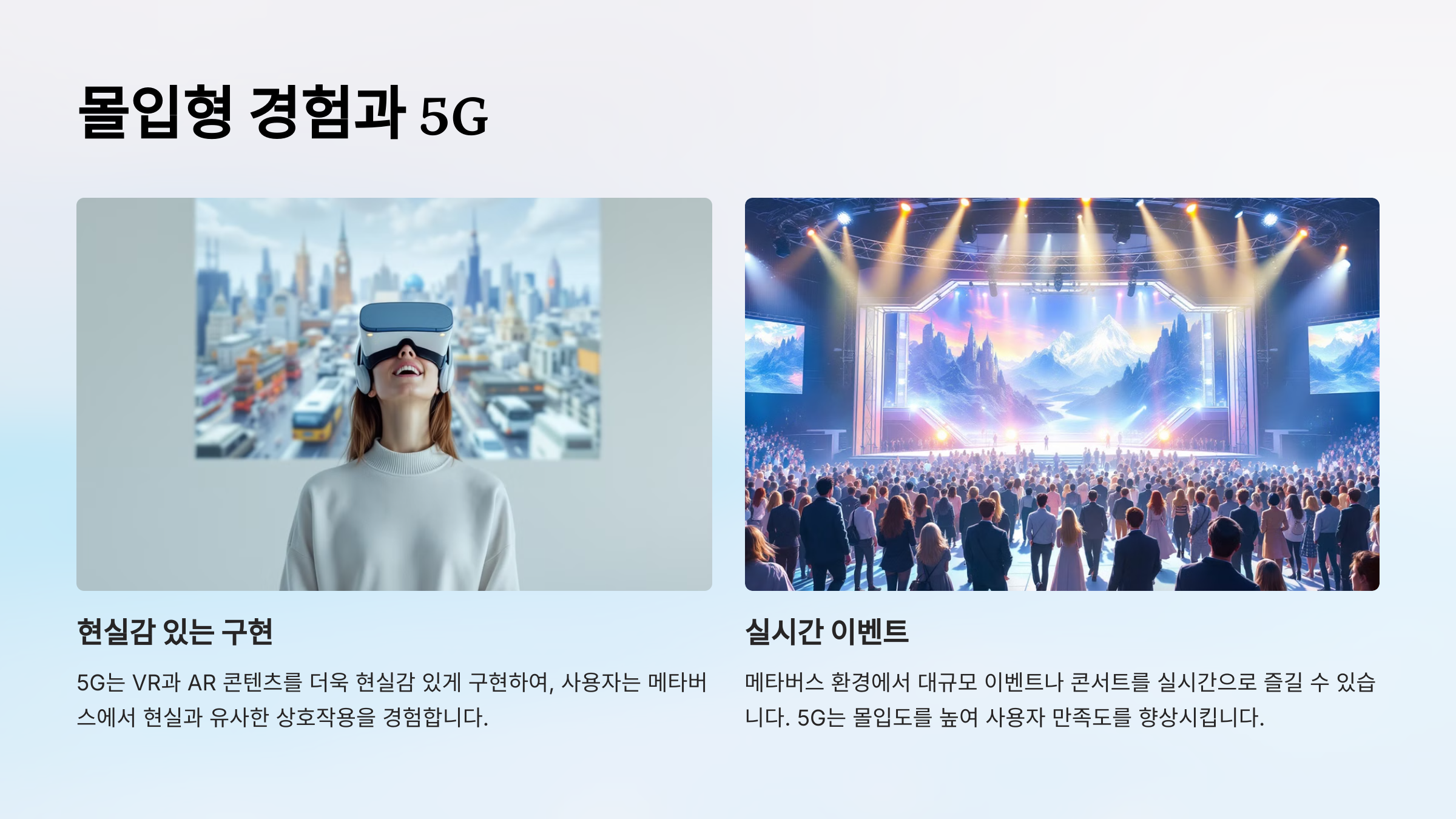 결국, 5G는 몰입형 경험을 한층 강화하여 사용자 만족도를 높이는 데 기여합니다.