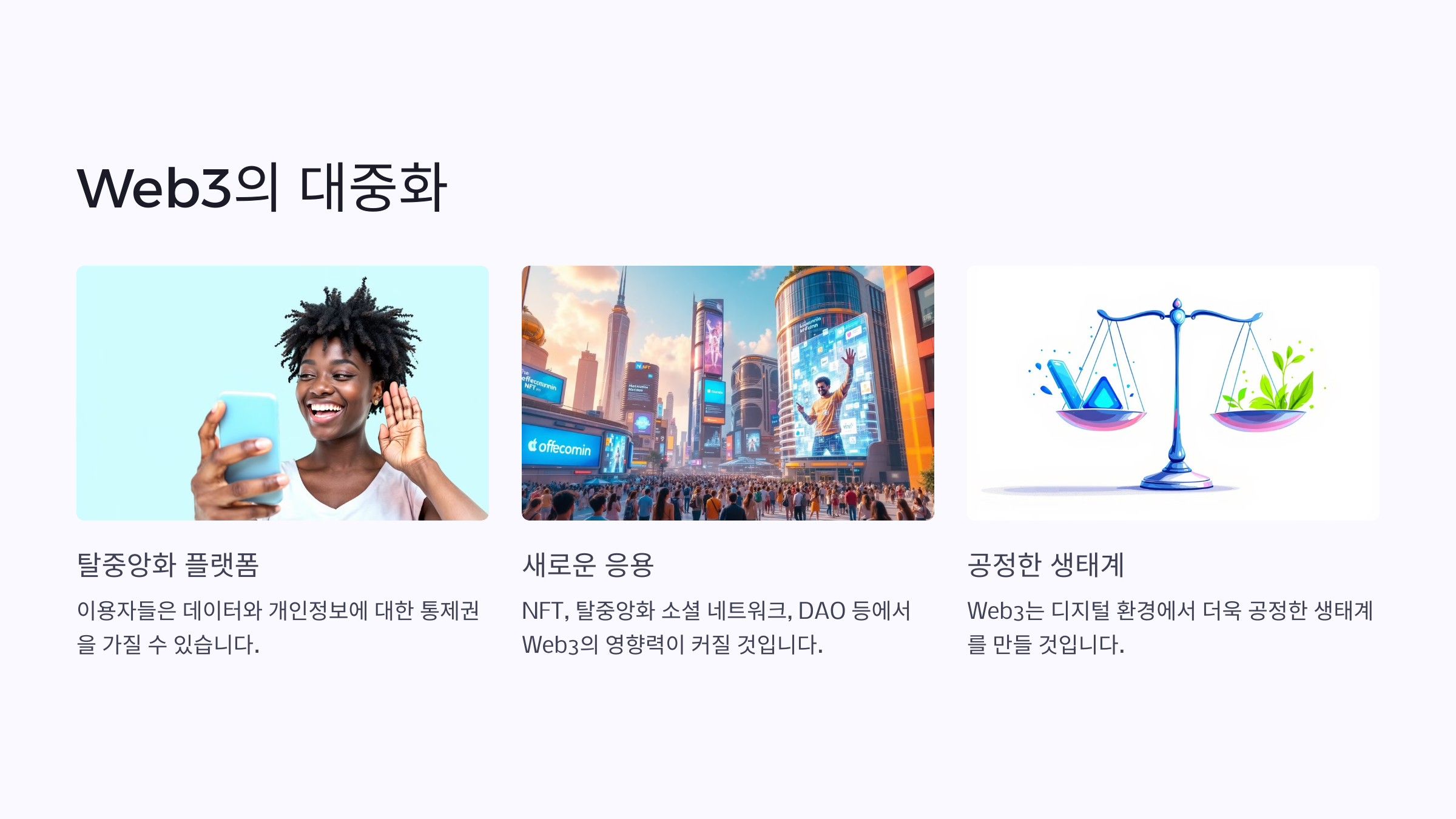 Web3는 블록체인 기술을 기반으로 한 차세대 인터넷 개념입니다.