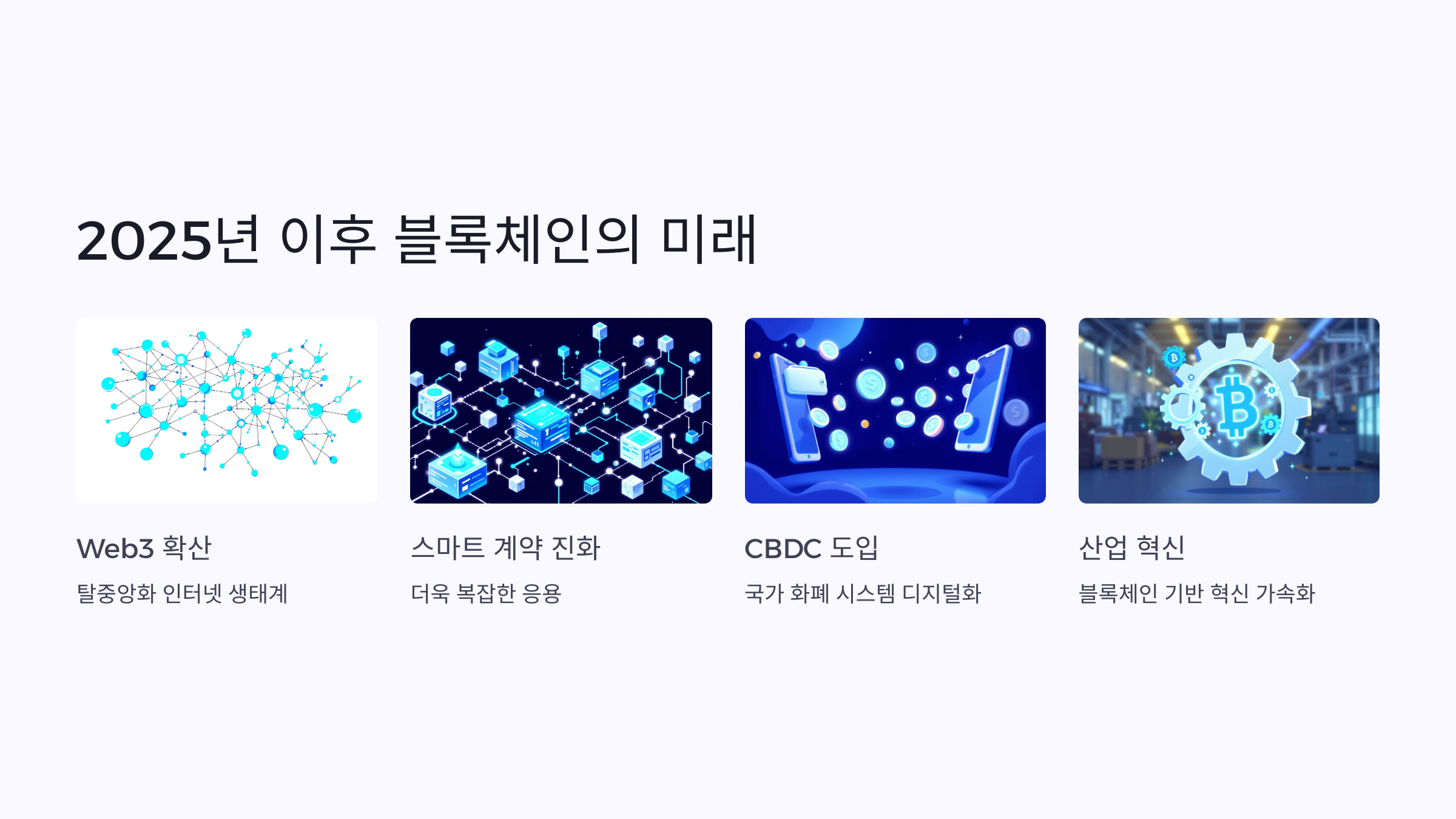 특히 금융, 공급망, 의료 분야에서 블록체인 기반 솔루션이 표준이 될 것입니다.