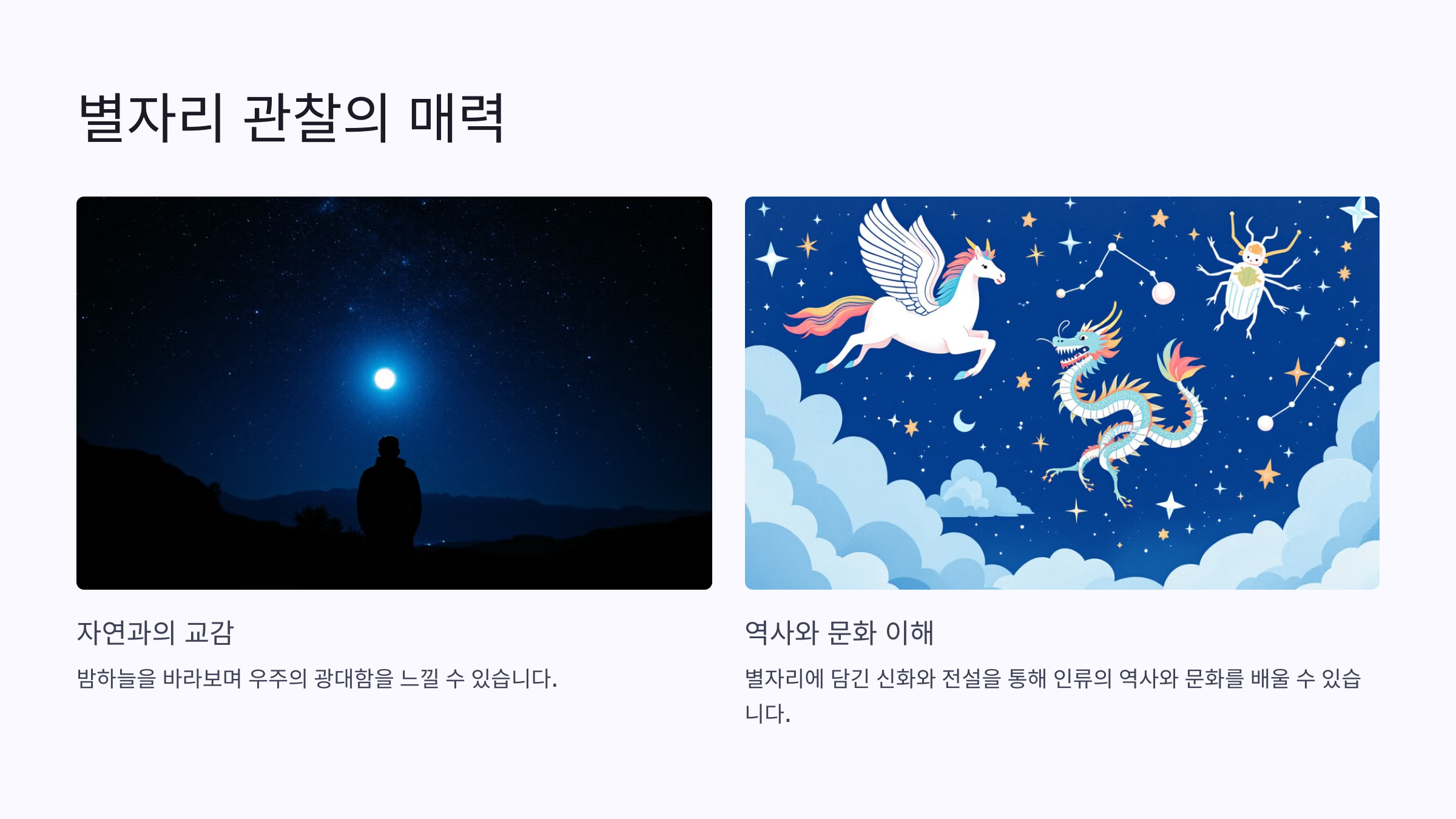 밤하늘의 별자리를 하나씩 찾아보며, 그 속에 담긴 신화와 이야기를 떠올려보세요. 별자리를 보는 즐거움이 배가될 것입니다.