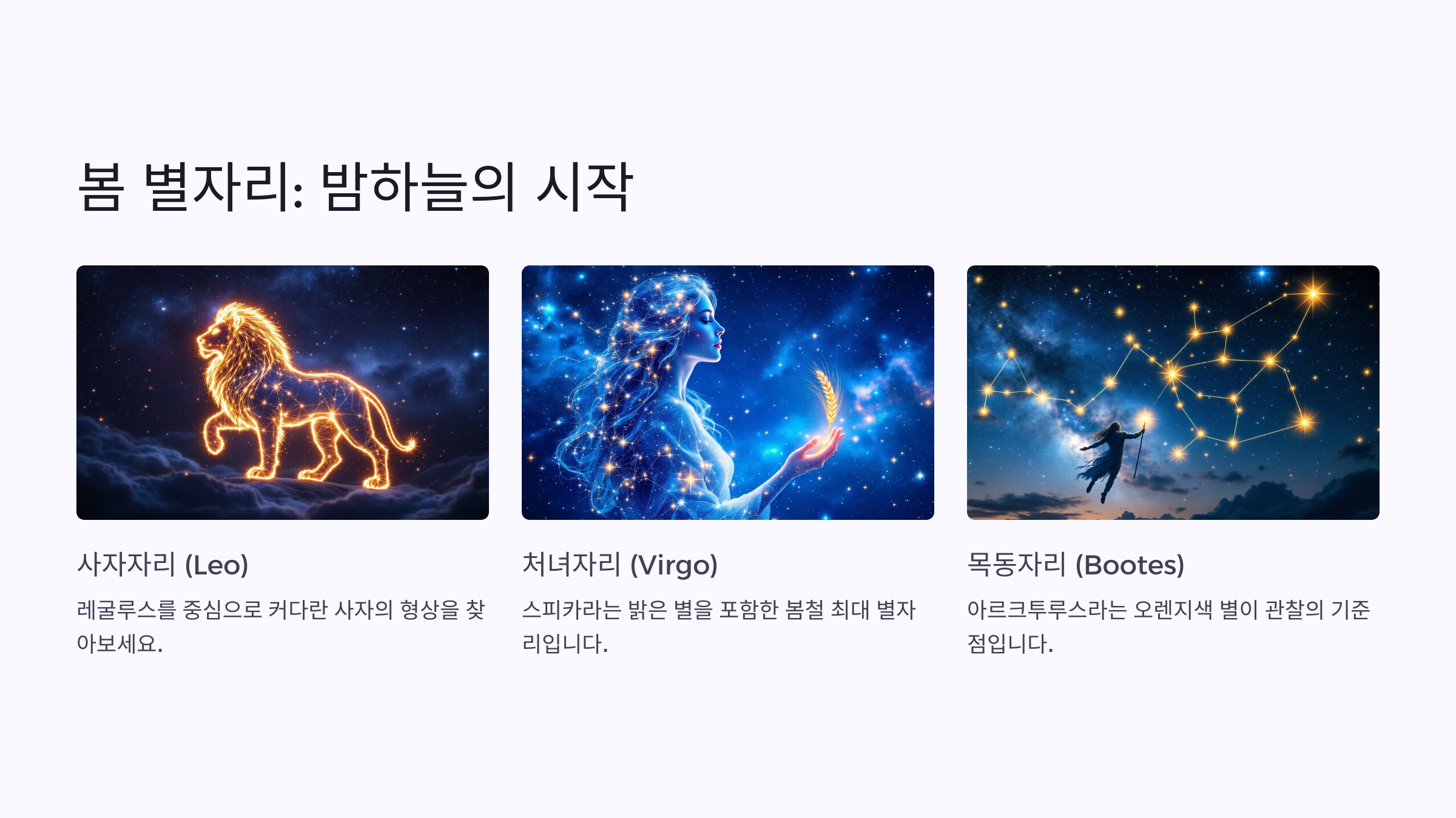 봄철 별자리는 비교적 간단한 구조로 초보자도 쉽게 익힐 수 있어 좋은 출발점입니다. 별자리 앱을 활용하면 더욱 쉽게 위치를 파악할 수 있습니다.