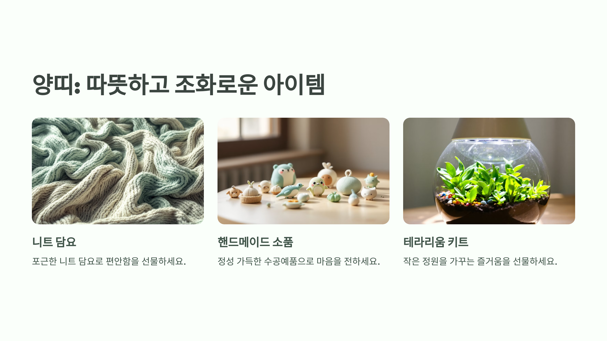 3. 테라리움 키트: 작은 정원을 꾸밀 수 있는 테라리움은 양띠의 자연을 사랑하는 마음을 만족시킵니다.