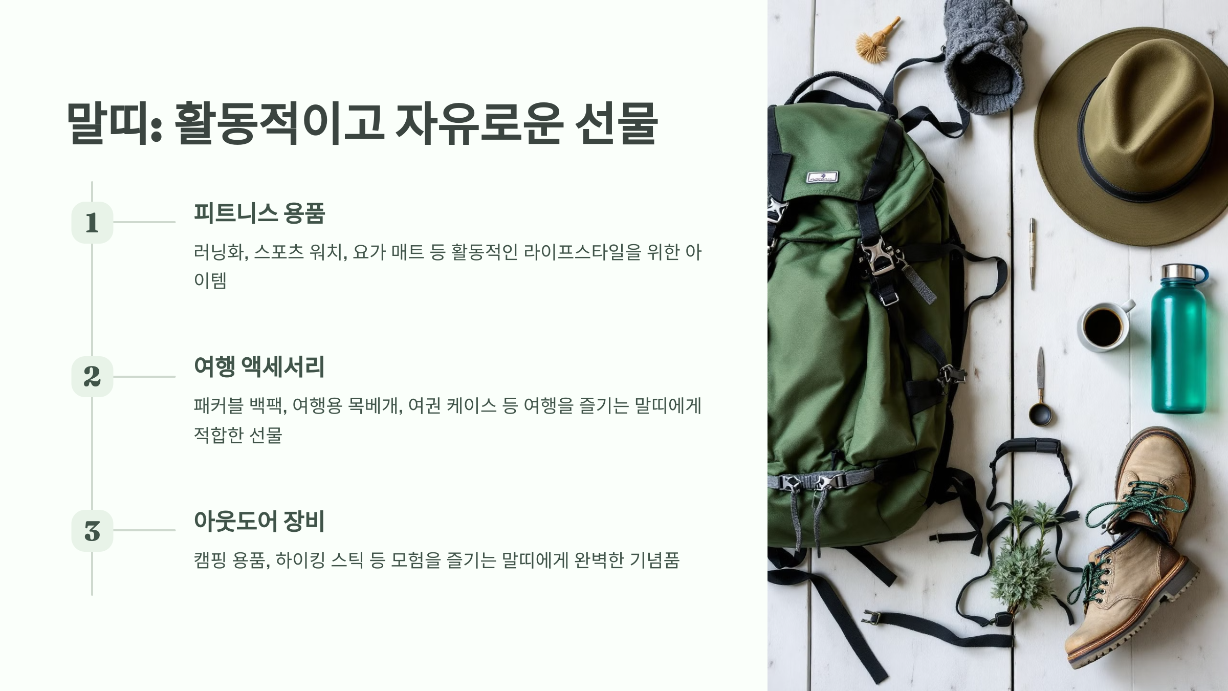 말띠는 활기차고 자유로운 성격으로, 활동적인 라이프스타일을 반영한 선물이 적합합니다. 말띠를 위한 추천 선물은 다음과 같습니다: