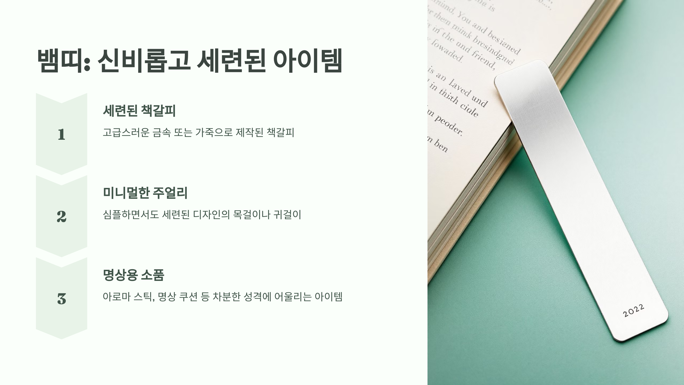 1. 세련된 책갈피: 독서를 좋아하는 뱀띠에게는 고급스러운 금속 또는 가죽으로 제작된 책갈피가 어울립니다.