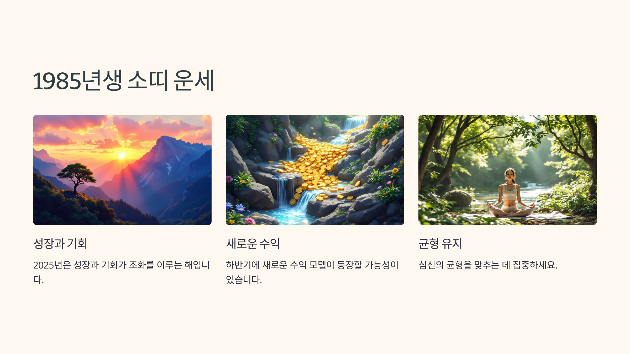 1985년생 소띠에게 2025년은 성장과 기회가 조화를 이루는 해가 될 것입니다.