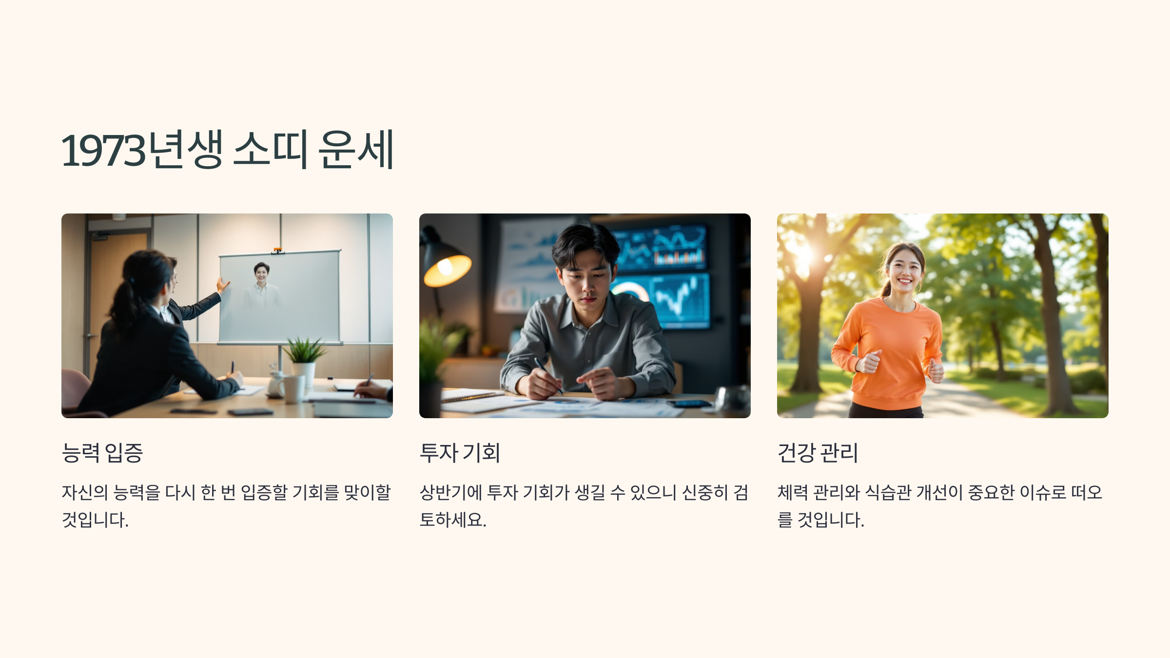 1973년생 소띠는 2025년에 자신의 능력을 다시 한 번 입증할 기회를 맞이할 것입니다.