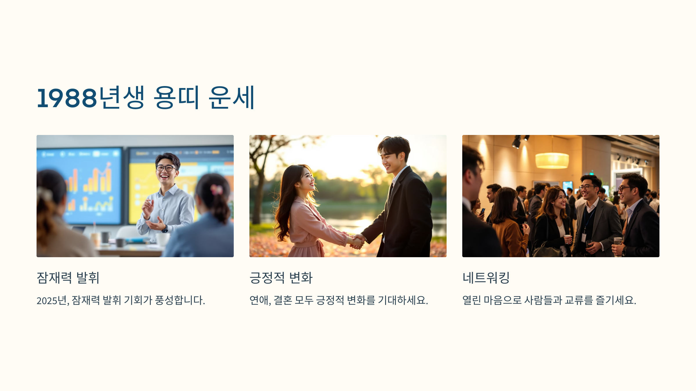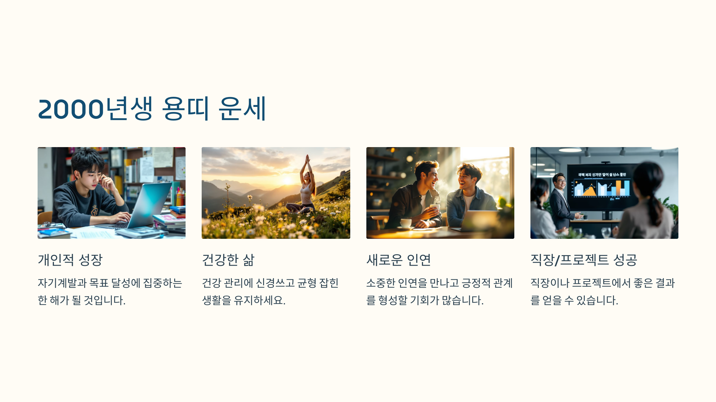 용띠의 사랑운은 전반적으로 긍정적이며, 싱글인 경우 새로운 인연이 다가올 가능성이 높고, 기혼자라면 관계의 깊이가 더해질 수 있습니다.