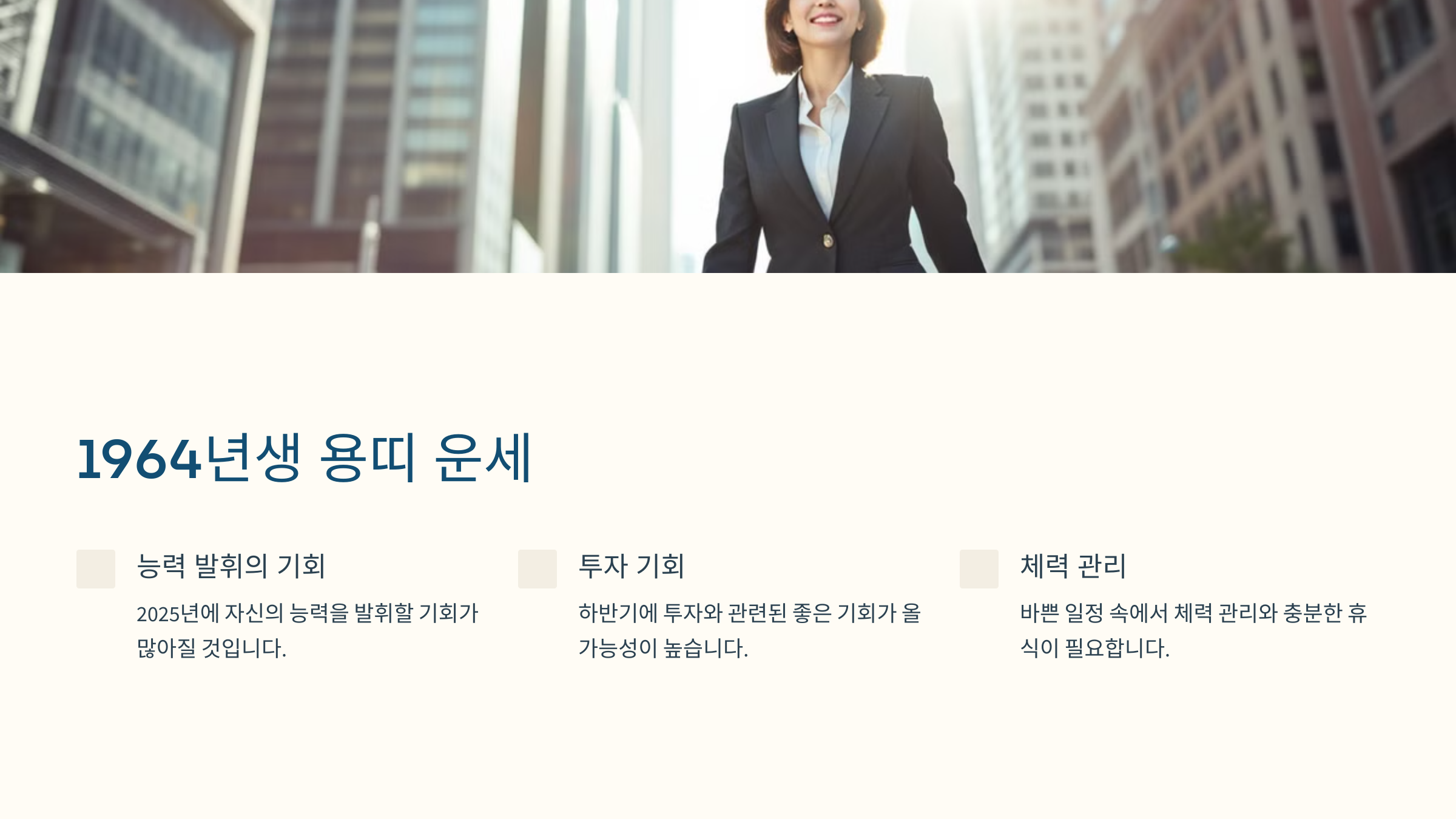 1964년생 용띠는 2025년에 자신의 능력을 발휘할 기회가 많아질 것입니다.