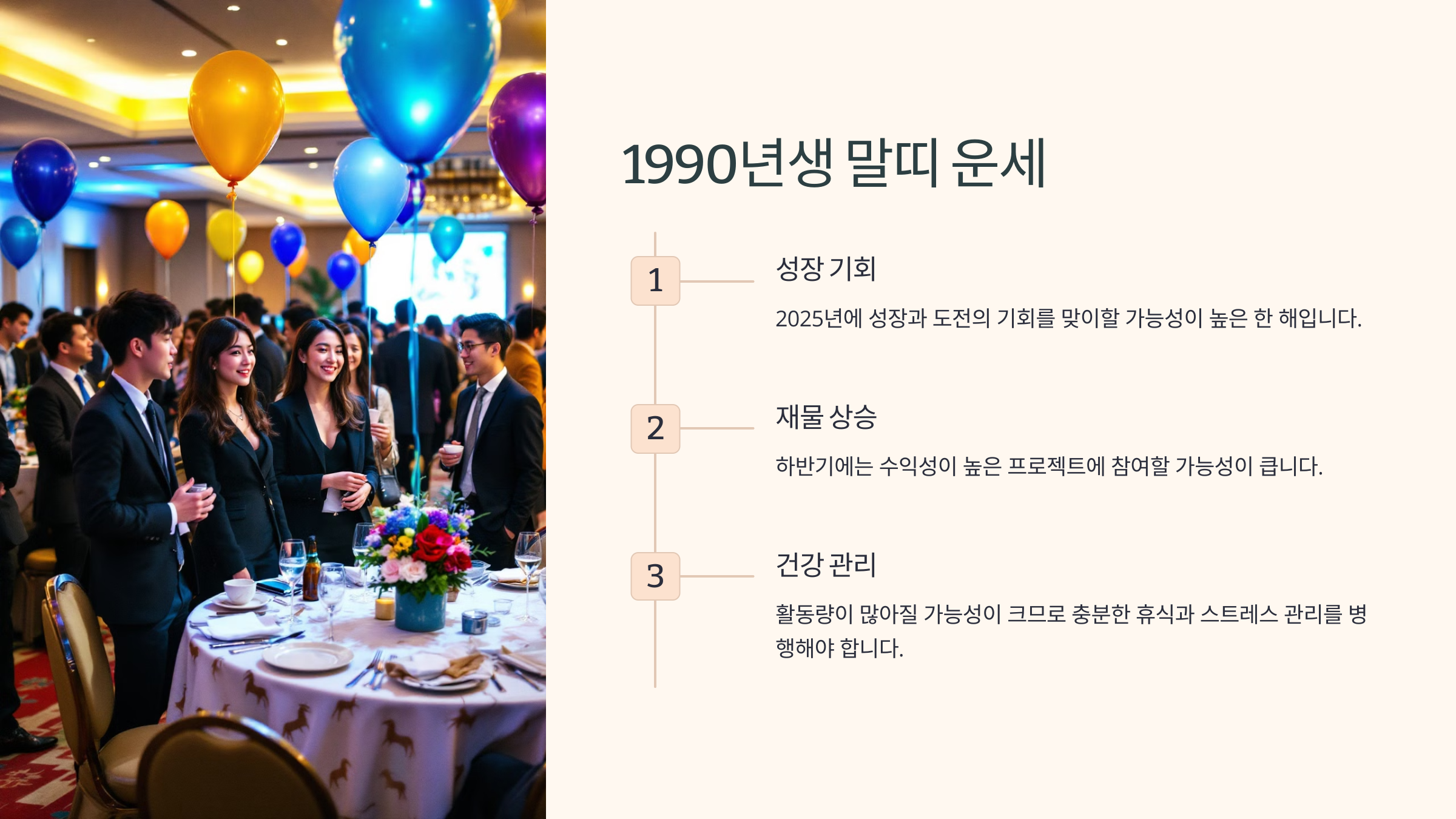 1990년생 말띠는 2025년에 성장과 도전의 기회를 맞이할 가능성이 높은 한 해입니다.