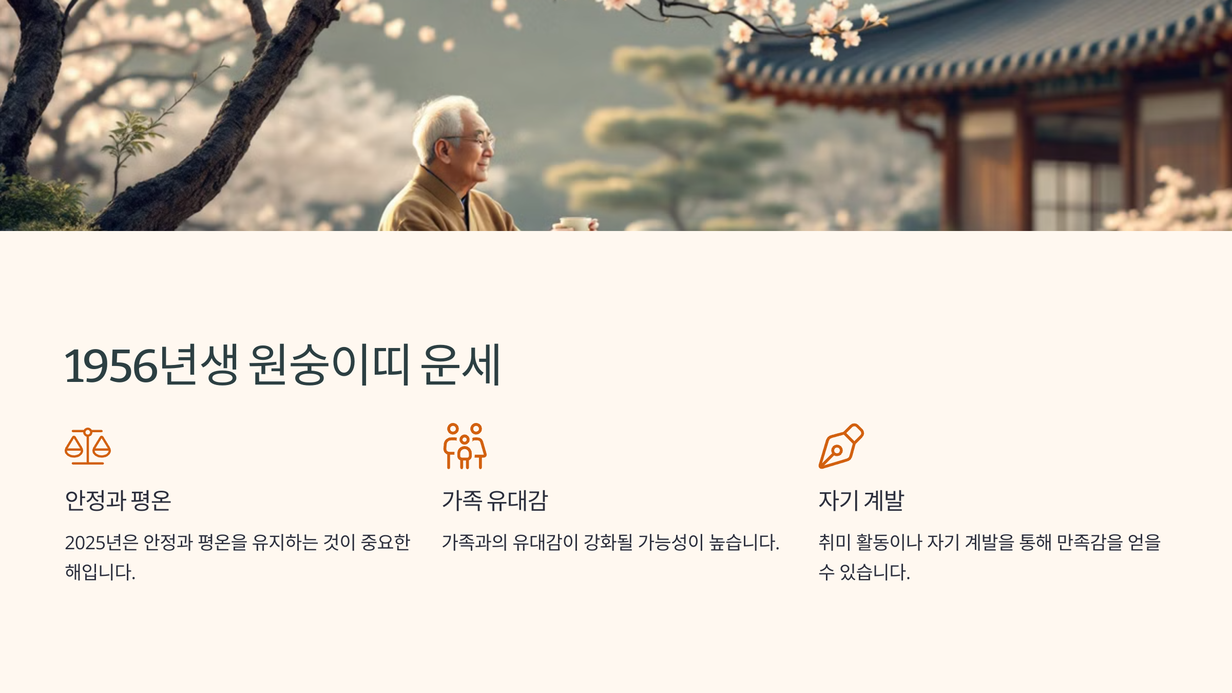 재물, 건강, 사랑 모두 균형을 이루며, 노력과 끈기로 좋은 결과를 얻을 수 있는 해입니다.