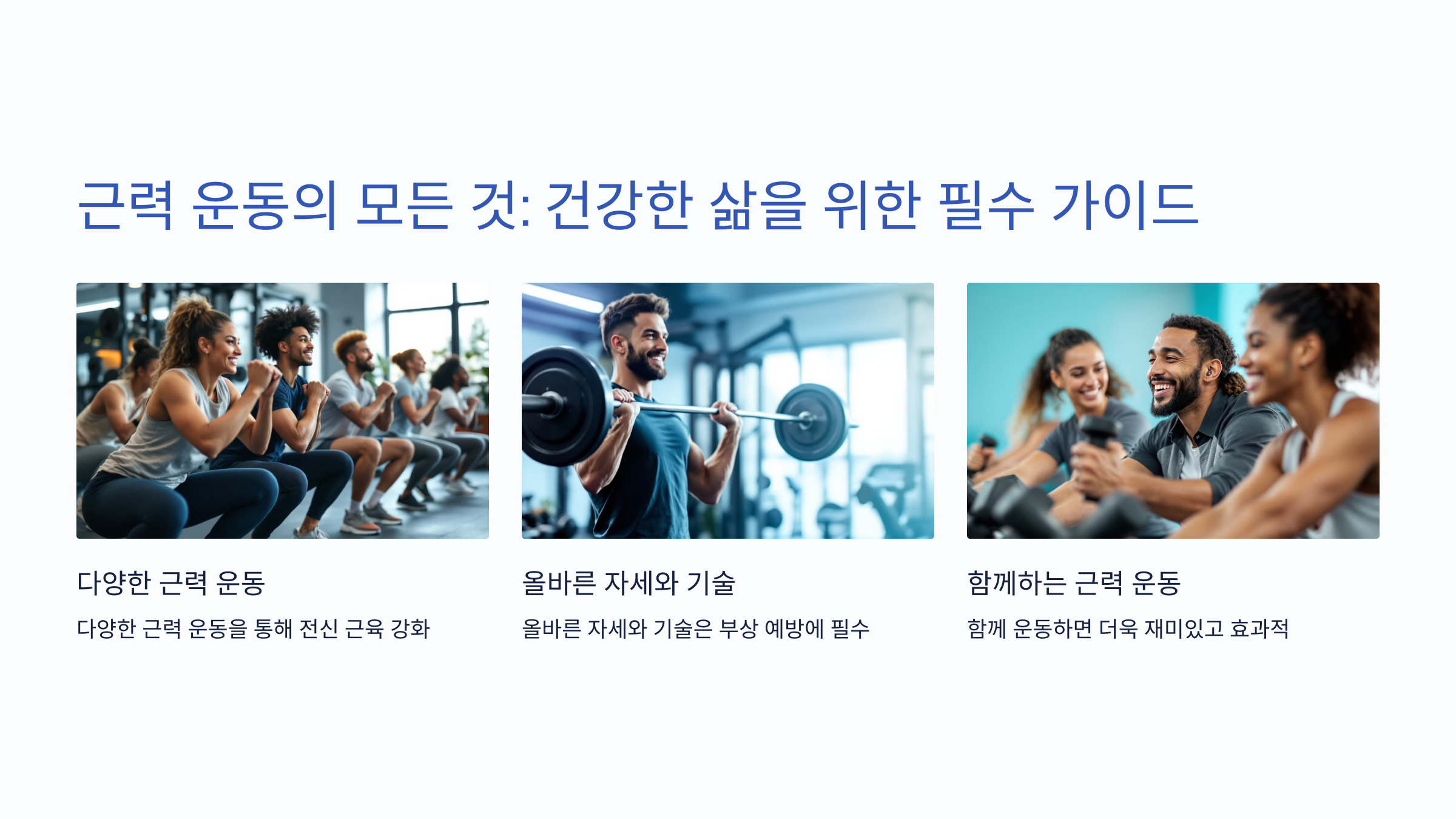 무거운 기구를 사용하는 웨이트 트레이닝부터, 맨몸으로 진행하는 칼리스테닉스까지 다양한 방식이 포함됩니다.