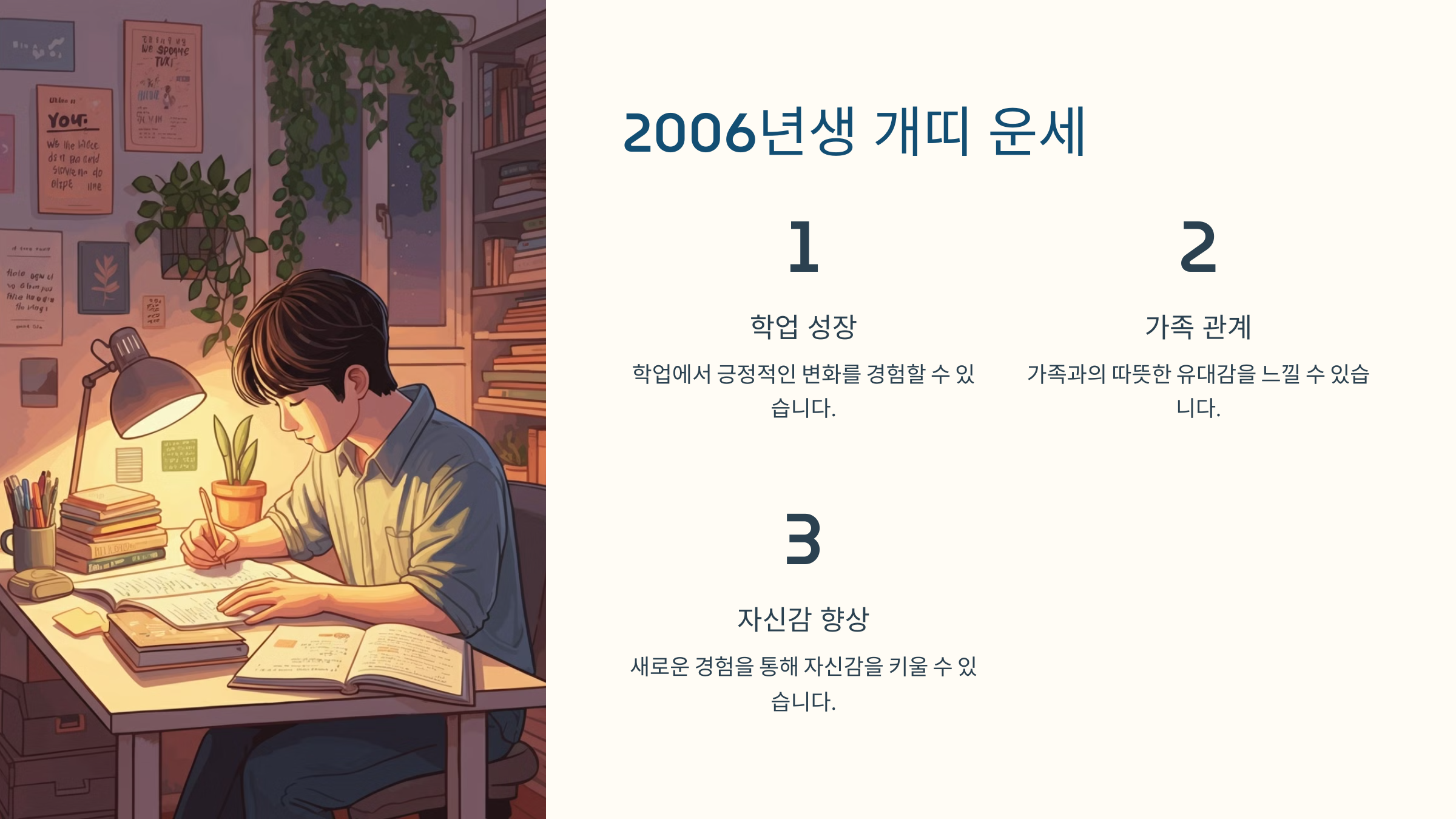2006년생 개띠는 2025년에 학업과 성장에서 긍정적인 변화를 경험할 가능성이 높은 한 해입니다.