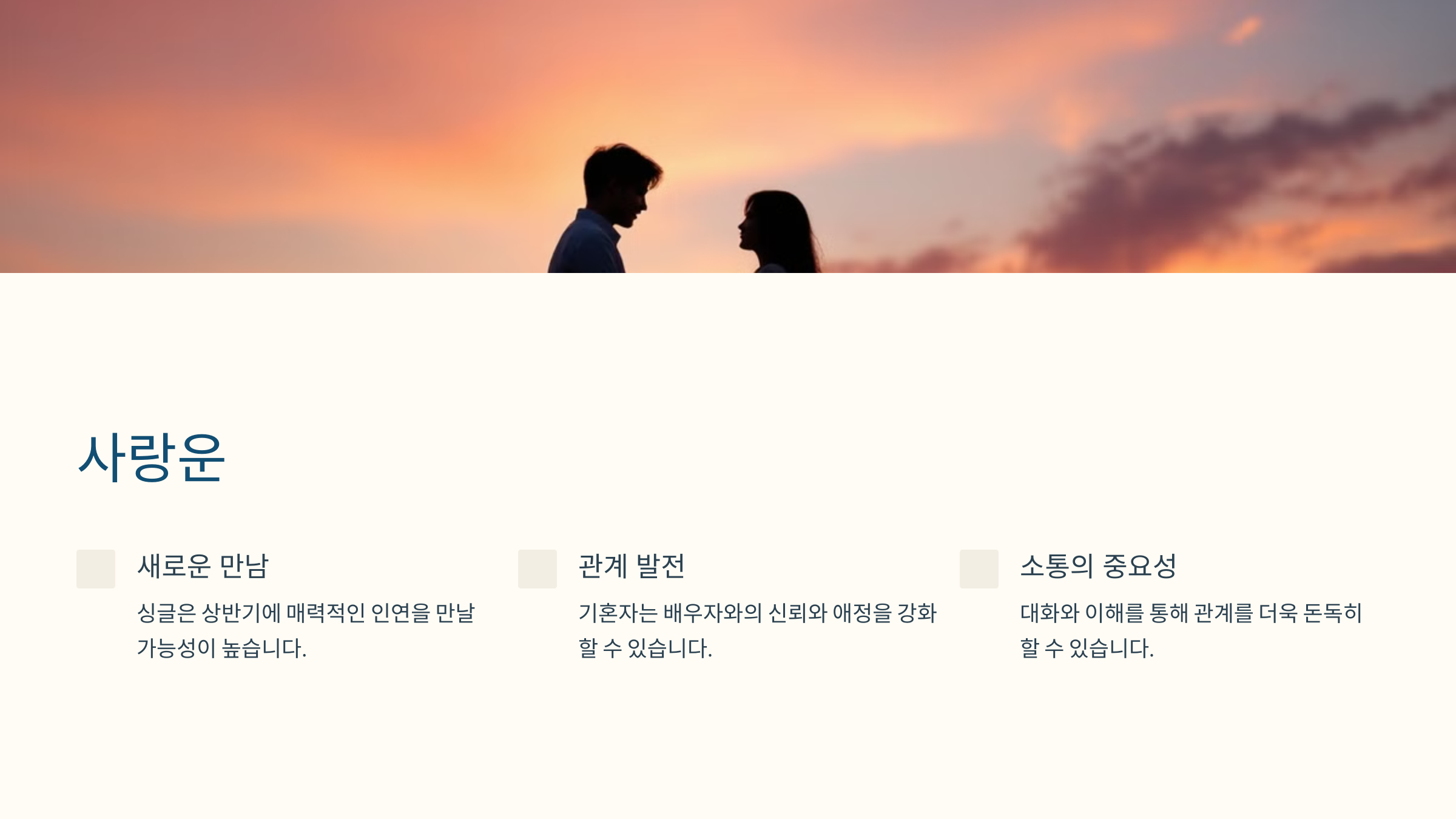 사랑운은 배우자나 가족과의 관계에서 깊은 소통과 신뢰를 강화할 수 있는 시기입니다.
