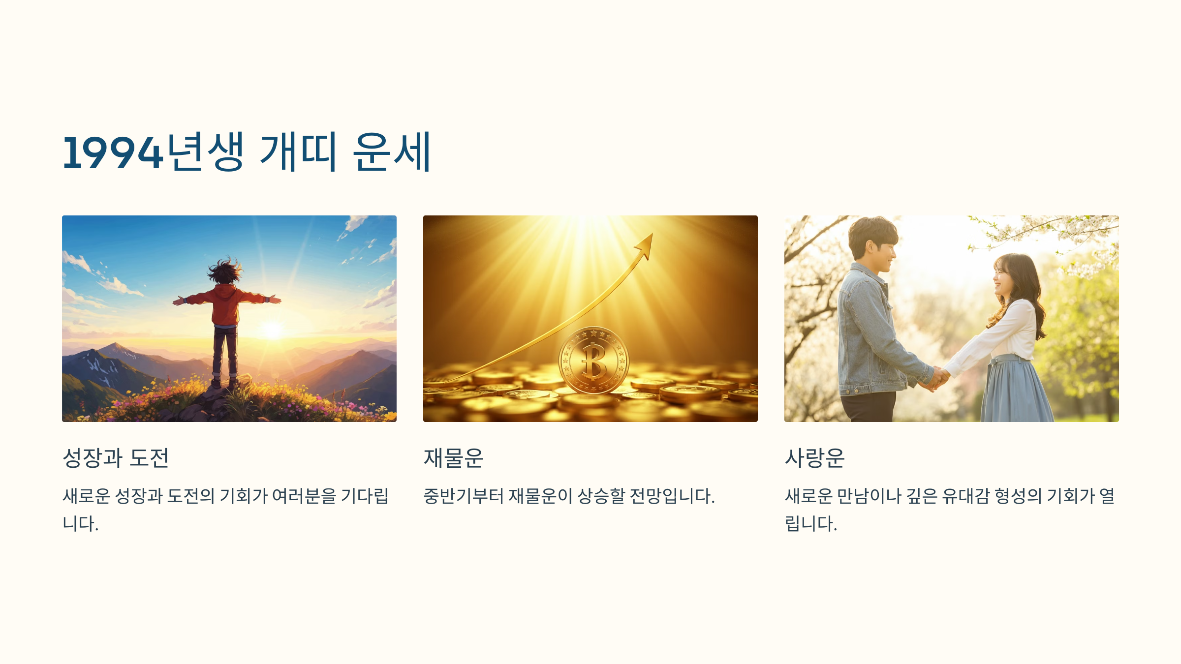 재물운, 건강운, 사랑운 모두 안정적인 흐름을 보이며, 자신의 목표를 달성하기에 유리한 환경이 조성될 것입니다.