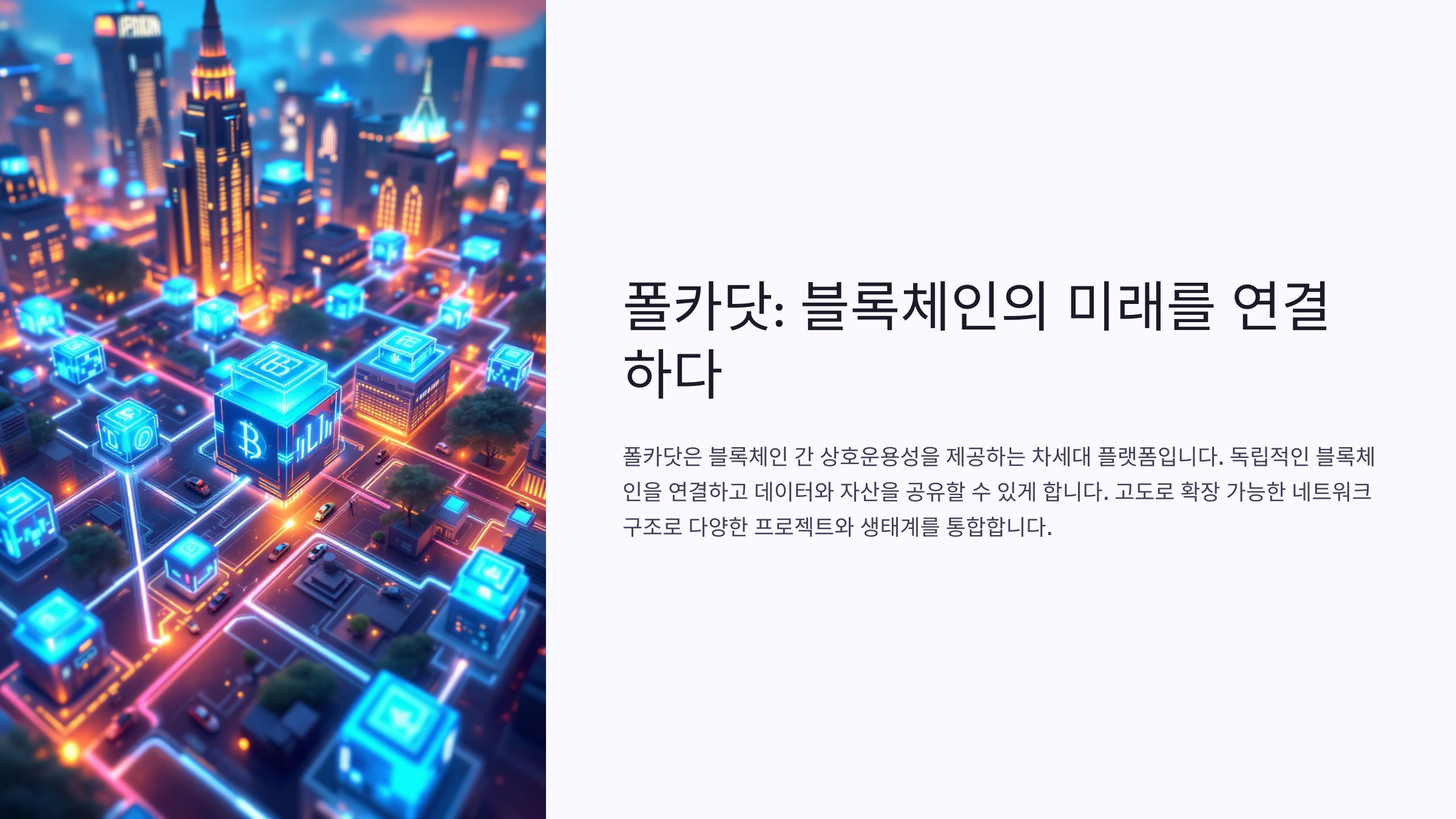 폴카닷은 다양한 블록체인을 연결하여 데이터와 자산을 공유할 수 있도록 설계된 블록체인 네트워크입니다.