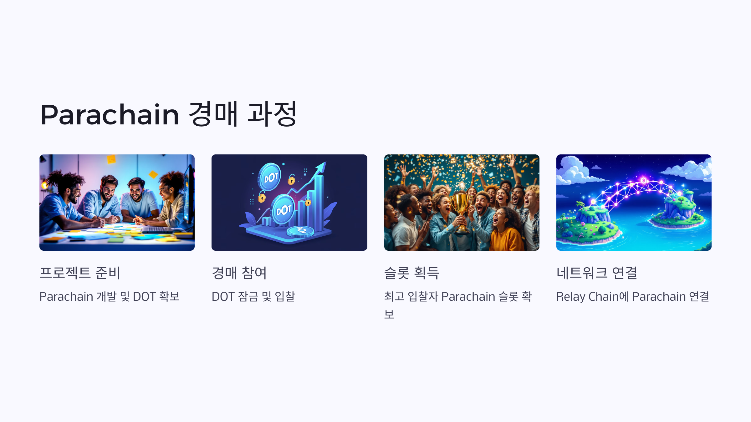 사용자는 DOT를 잠금(Locking)하여 프로젝트가 Parachain 슬롯을 확보할 수 있도록 지원합니다.