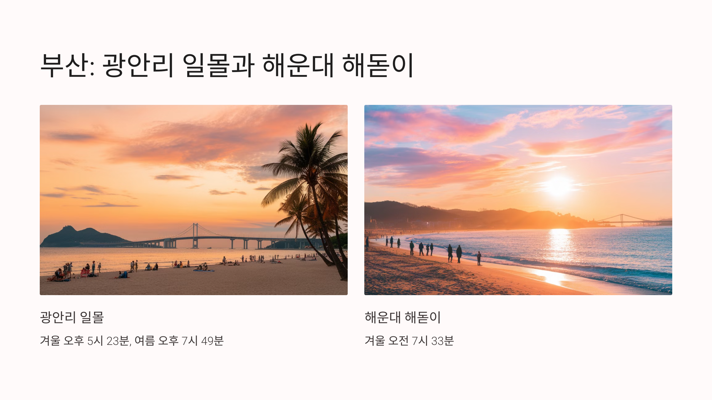 부산: 오전 7시 33분 (겨울), 오전 5시 08분 (여름)