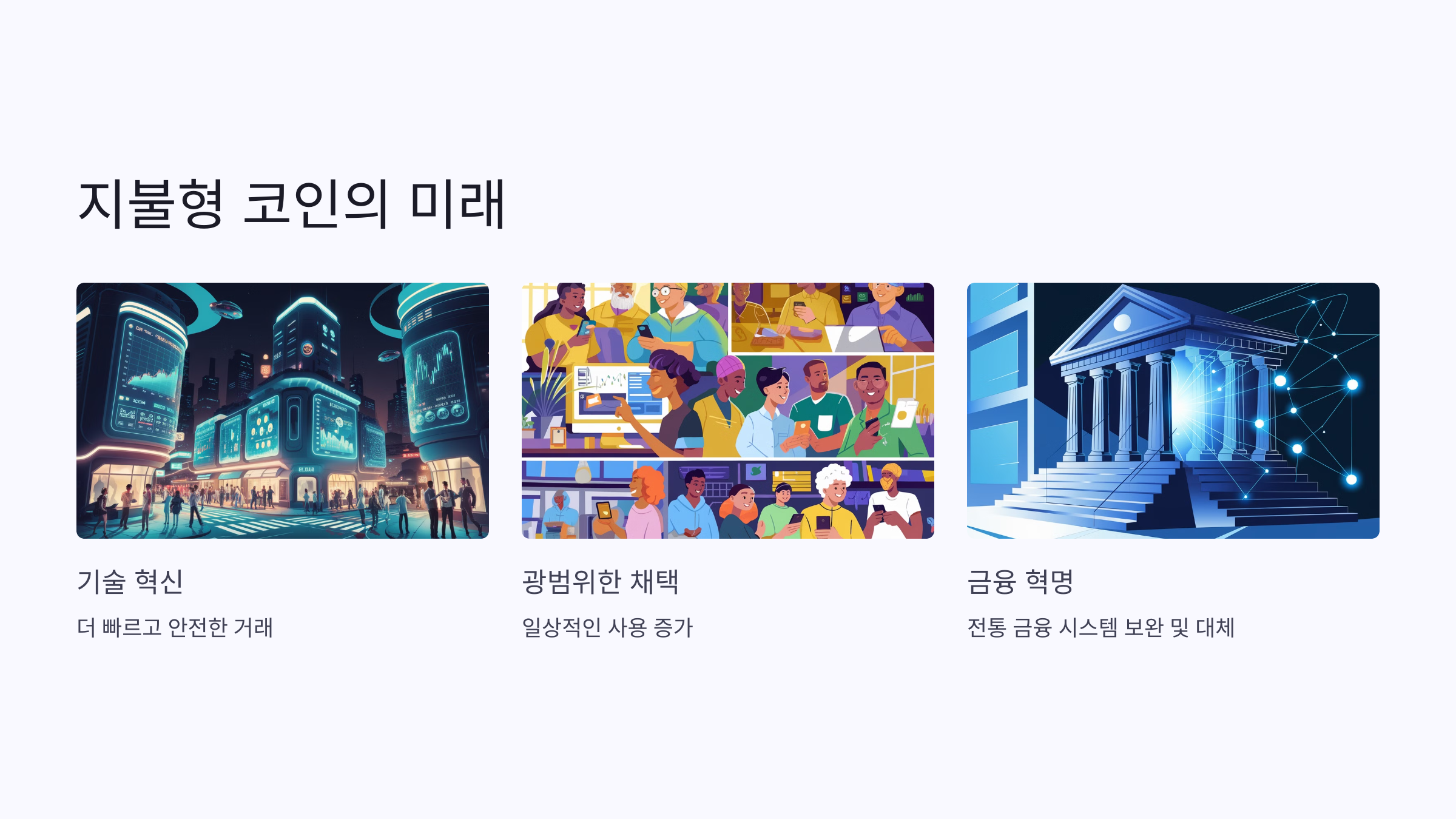 지불형 코인은 소액 결제, 국제 송금, 전자상거래 등 다양한 분야에서 활용됩니다.