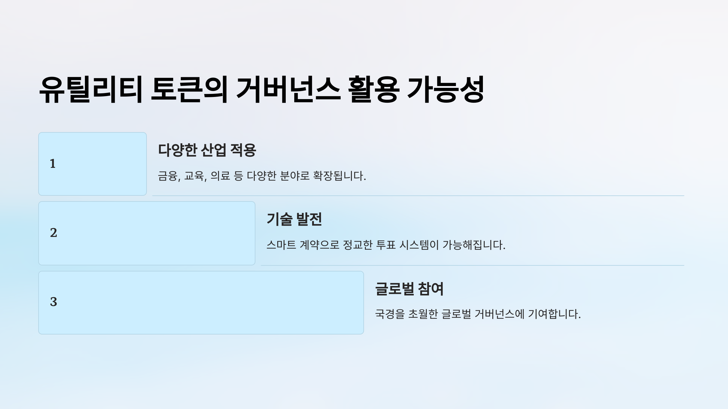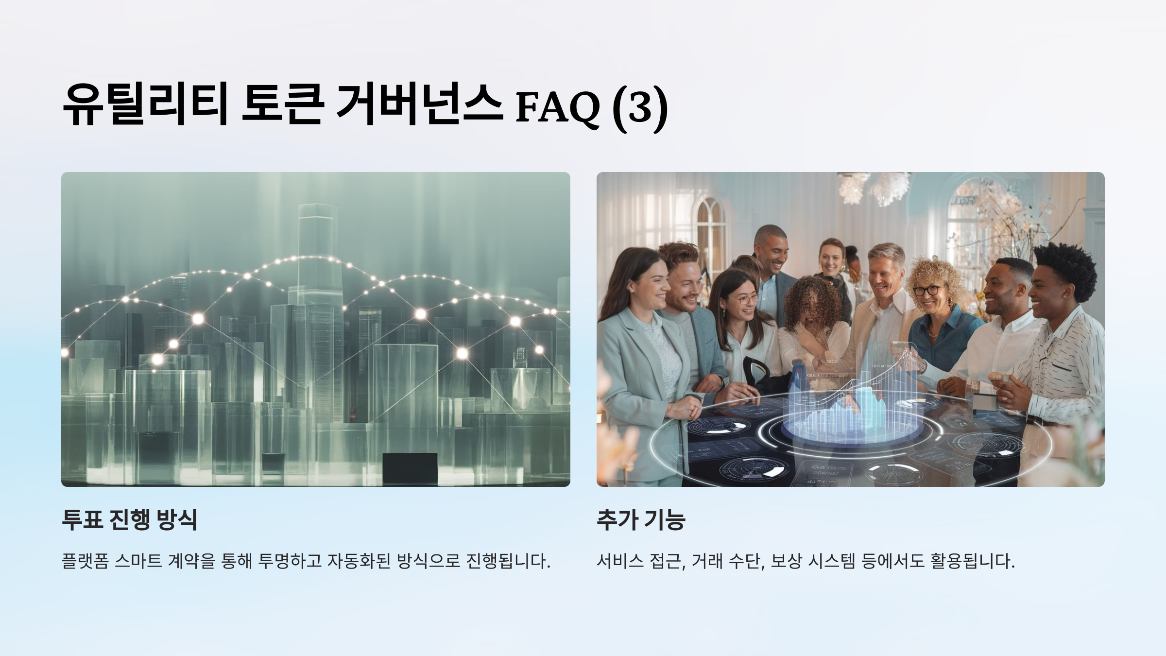 정책 방향 결정 과정에 유틸리티 토큰이 활용됨으로써 플랫폼은 더욱 투명하고 공정한 구조를 유지할 수 있습니다.