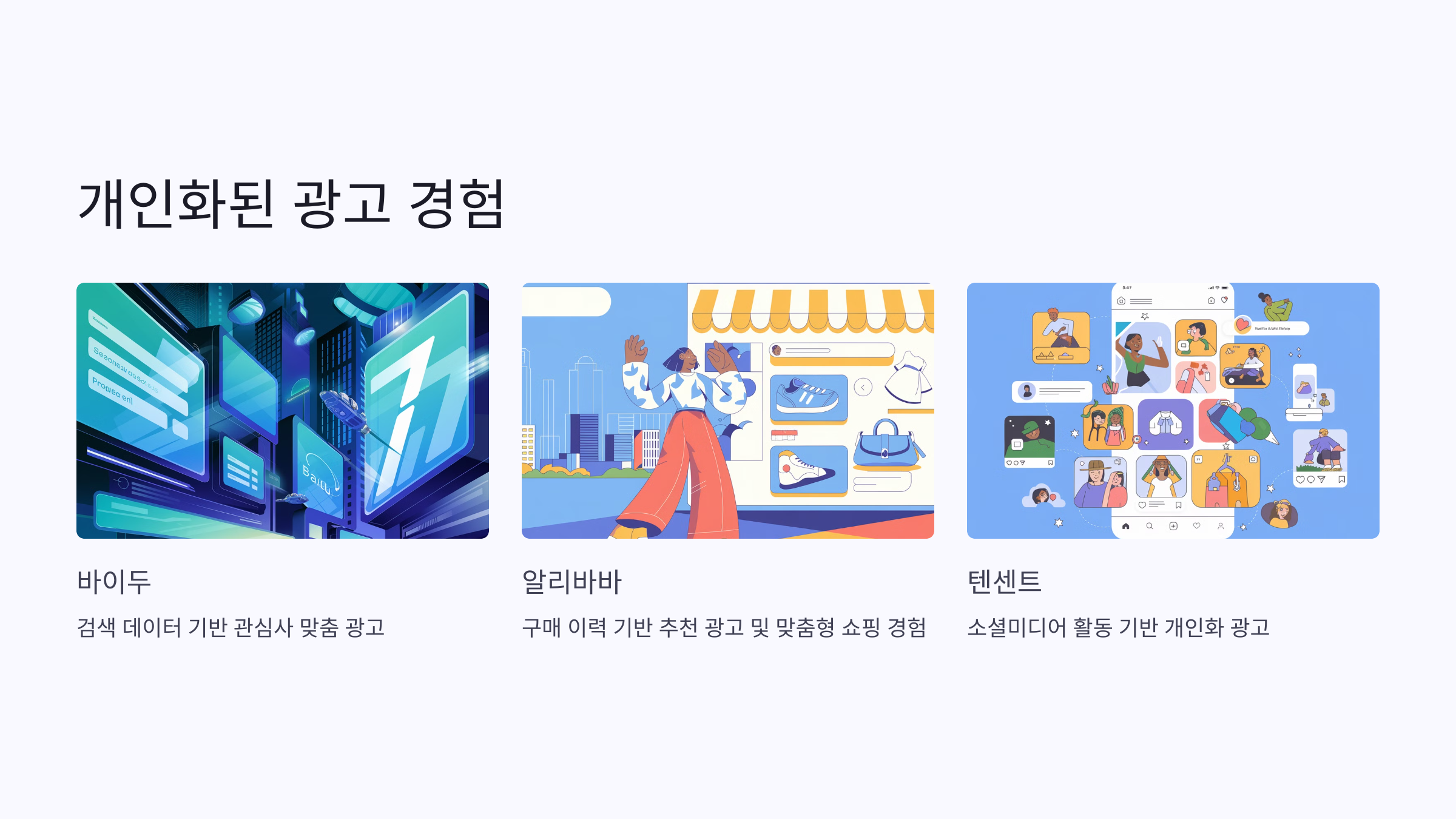 바이두는 검색 데이터를 기반으로 한 타겟팅 광고에 강점을 가지고 있습니다.