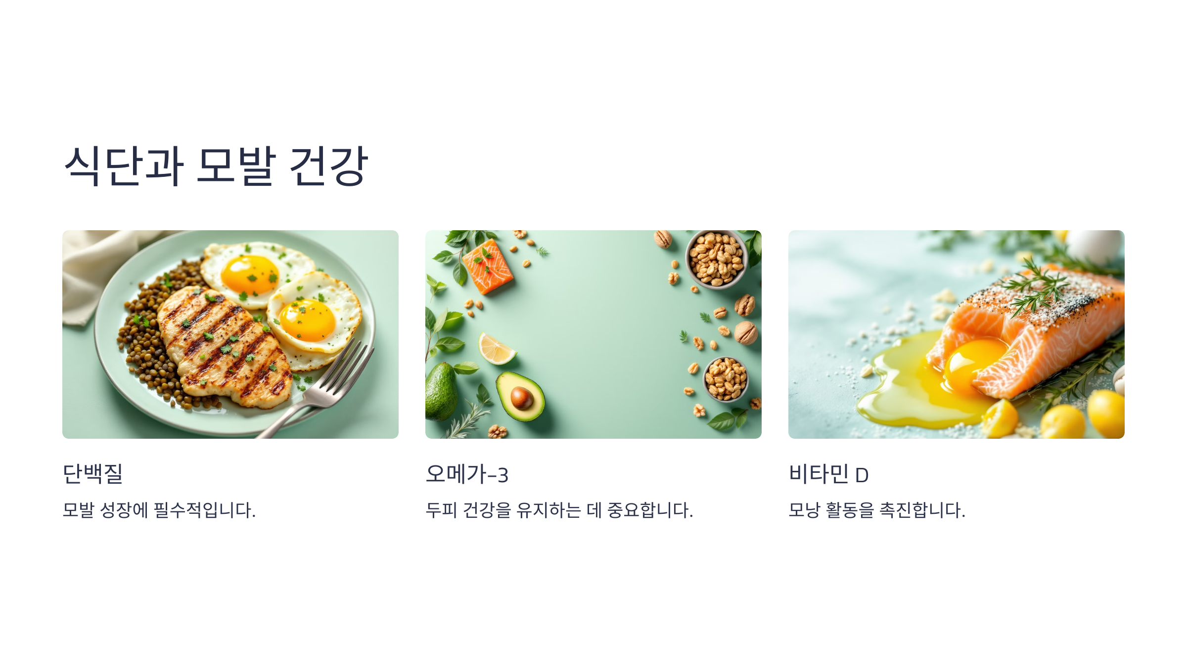 균형 잡힌 식단은 탈모 예방의 핵심입니다.