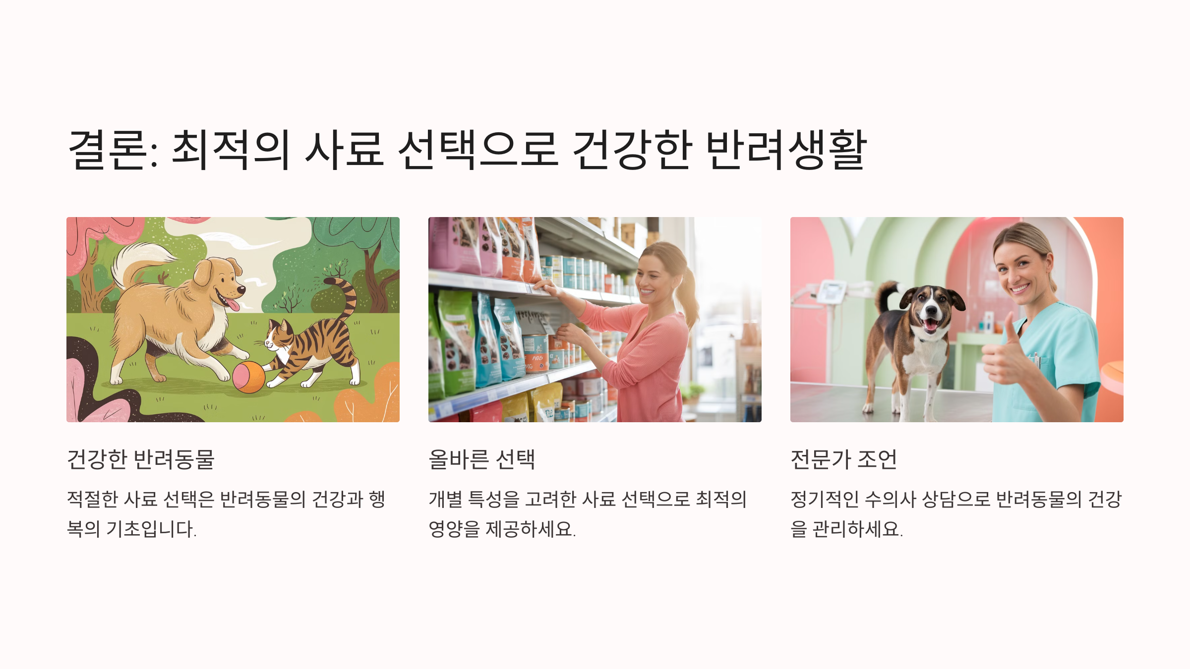 최적의 영양소 배합을 위해 수의사와 상담하는 것도 좋은 방법입니다.