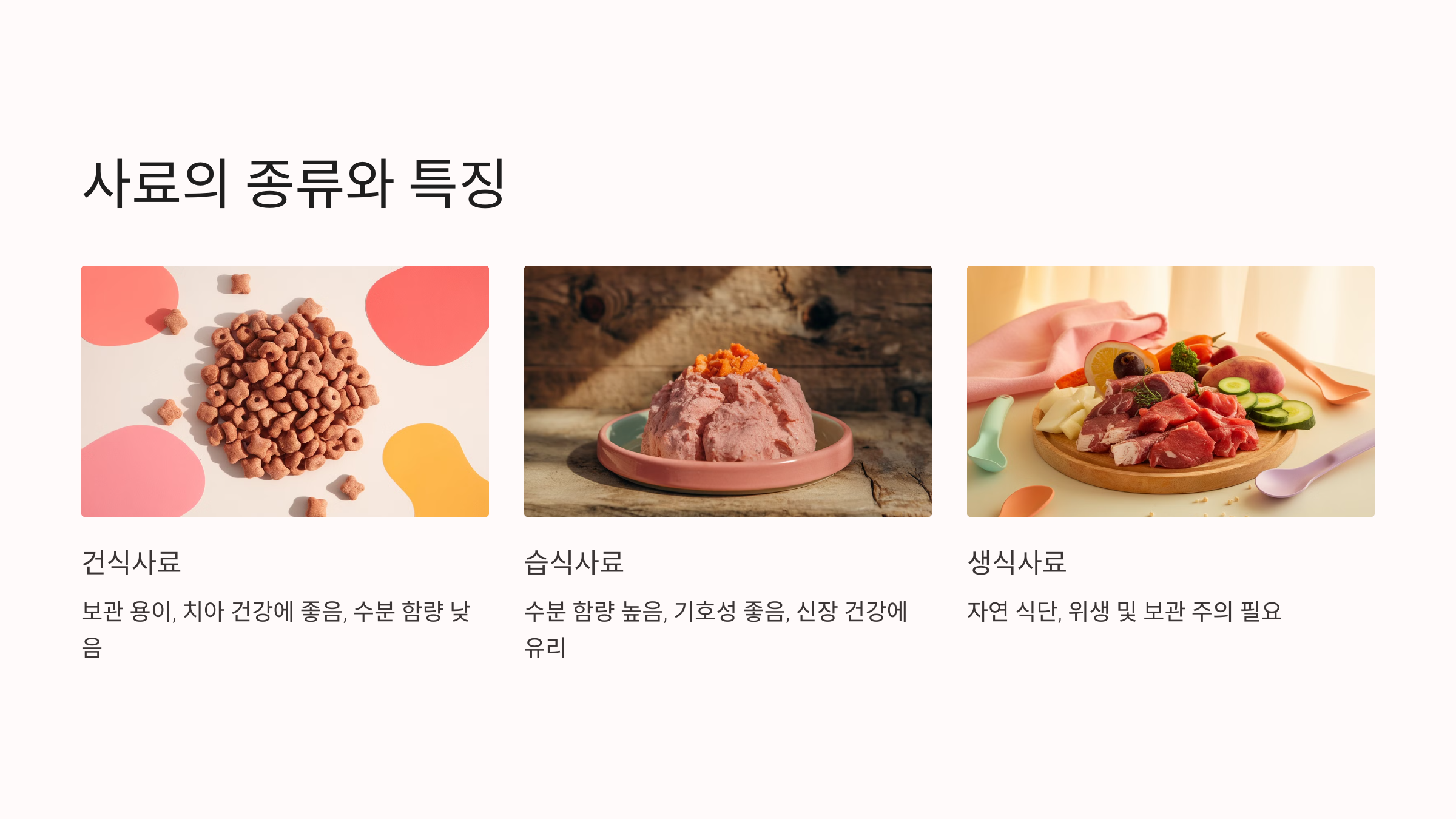 생식사료는 자연스러운 식단을 지향하지만, 위생 문제와 보관의 어려움이 있을 수 있습니다.