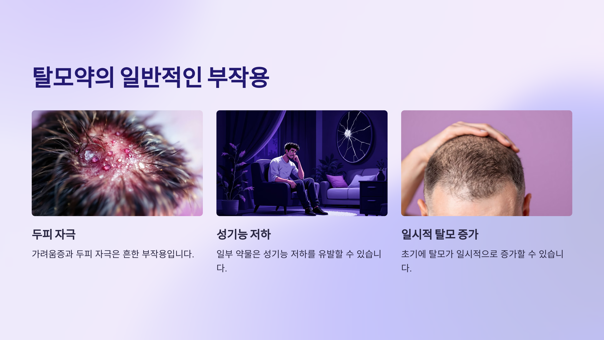 두피 자극, 가려움증 등이 흔한 부작용입니다.