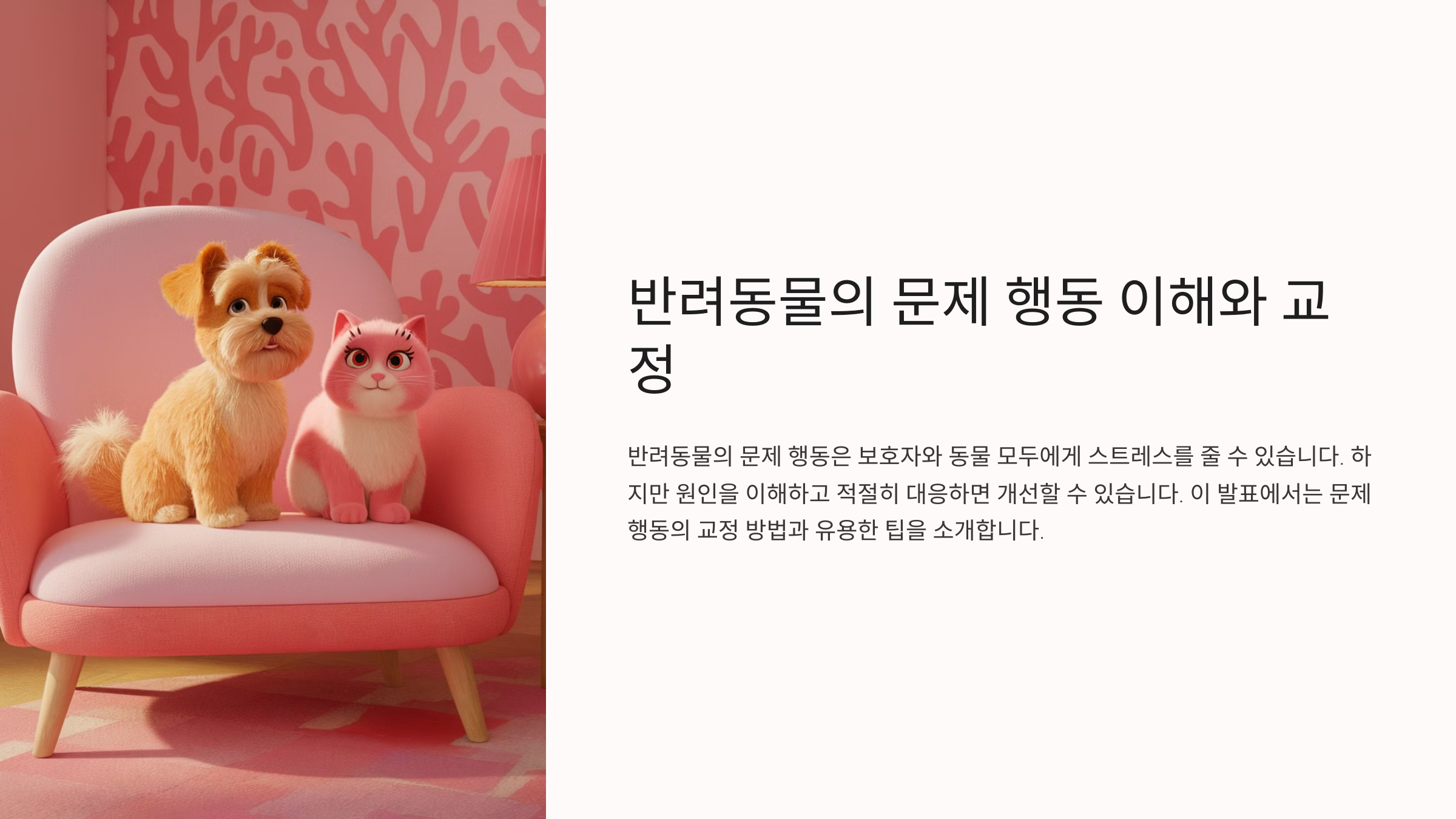 문제 행동 교정은 보호자와 전문가의 협력이 중요하며, 이를 통해 반려동물의 삶의 질을 향상시킬 수 있습니다.