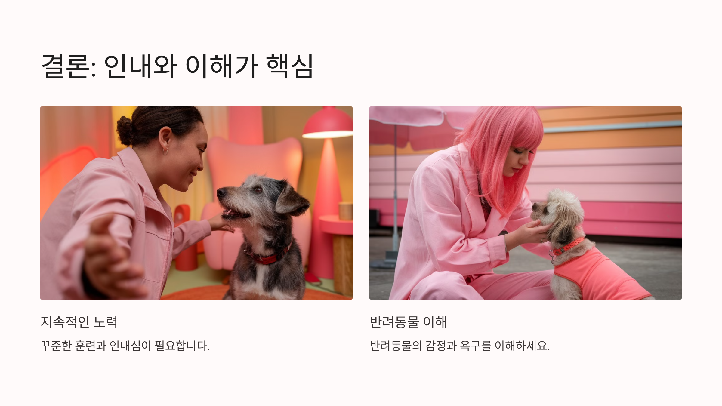 꾸준한 훈련이 핵심입니다. 반려동물의 학습 속도를 존중하며 천천히 진행하세요.