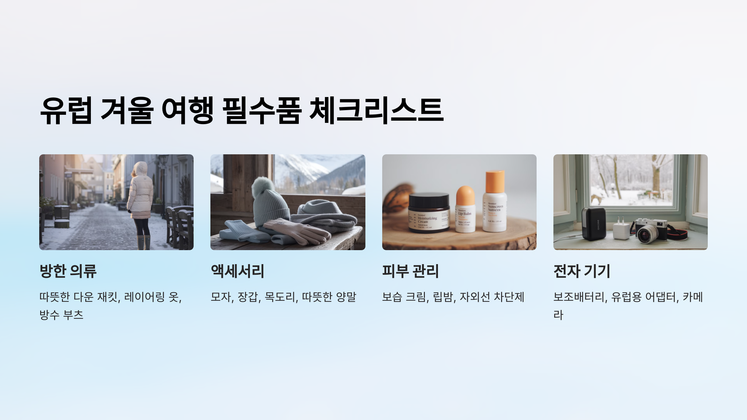유럽 겨울 여행에서 꼭 필요한 방한 아이템은 무엇인가요?