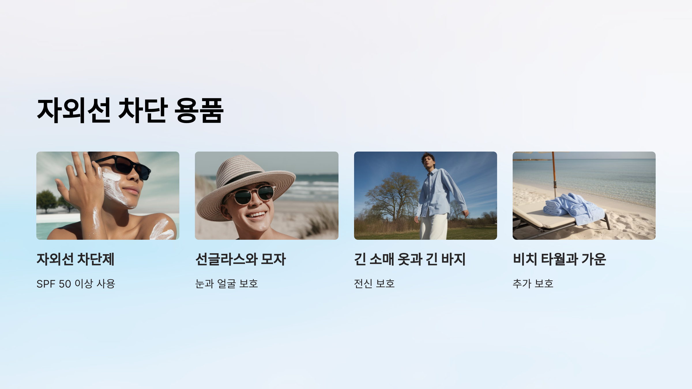 SPF 50 이상의 자외선 차단제를 사용하여 피부를 보호하세요.