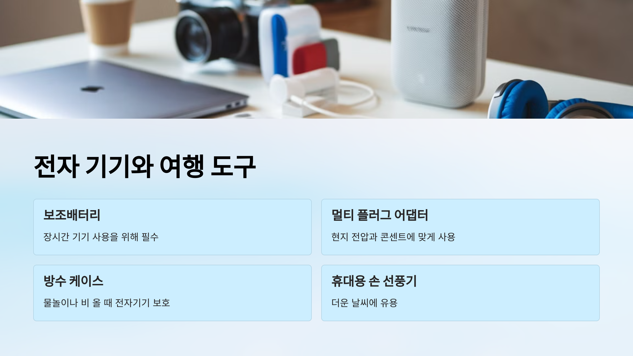 여행용 전자 기기는 어떤 것을 챙겨야 하나요?