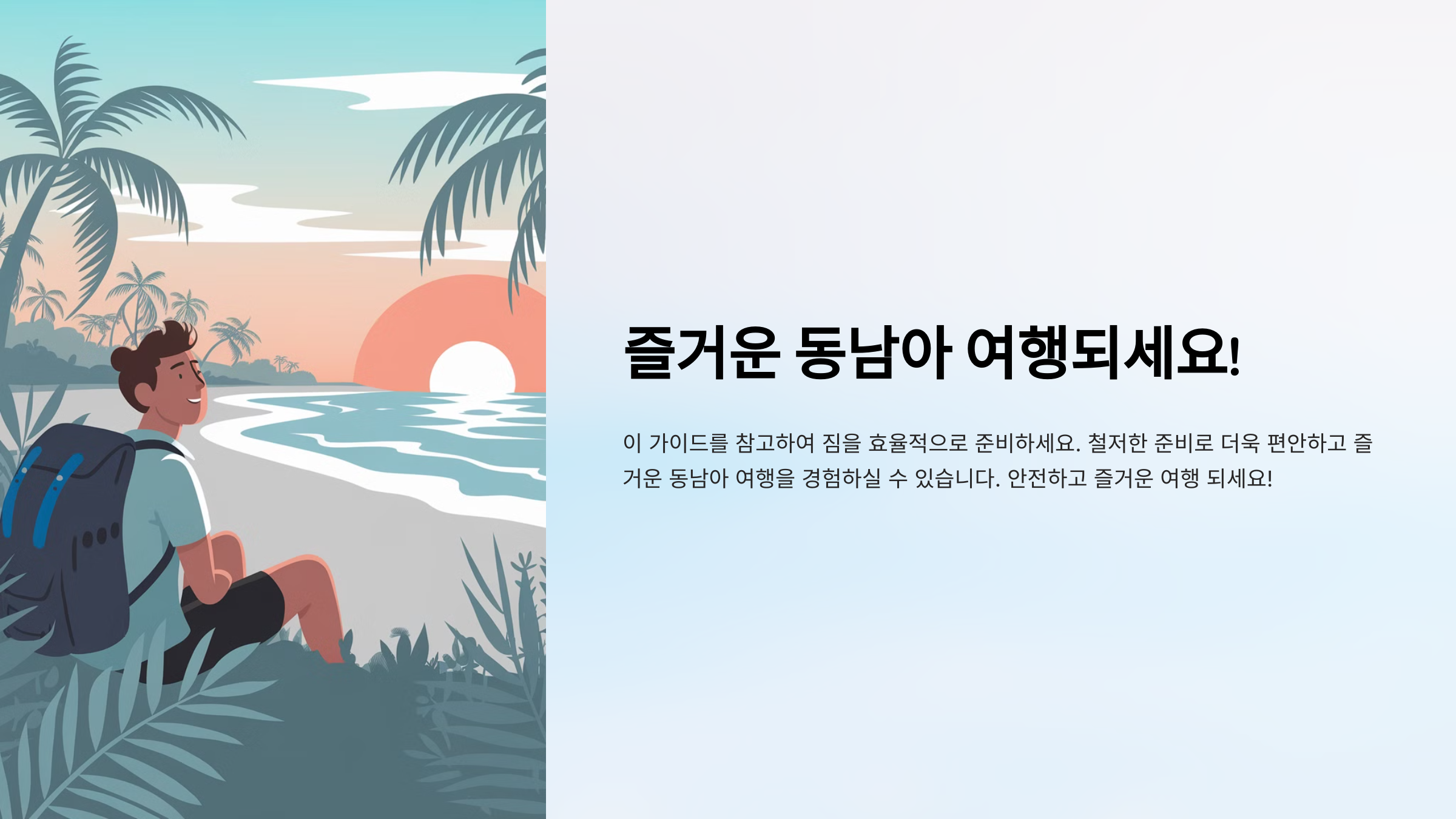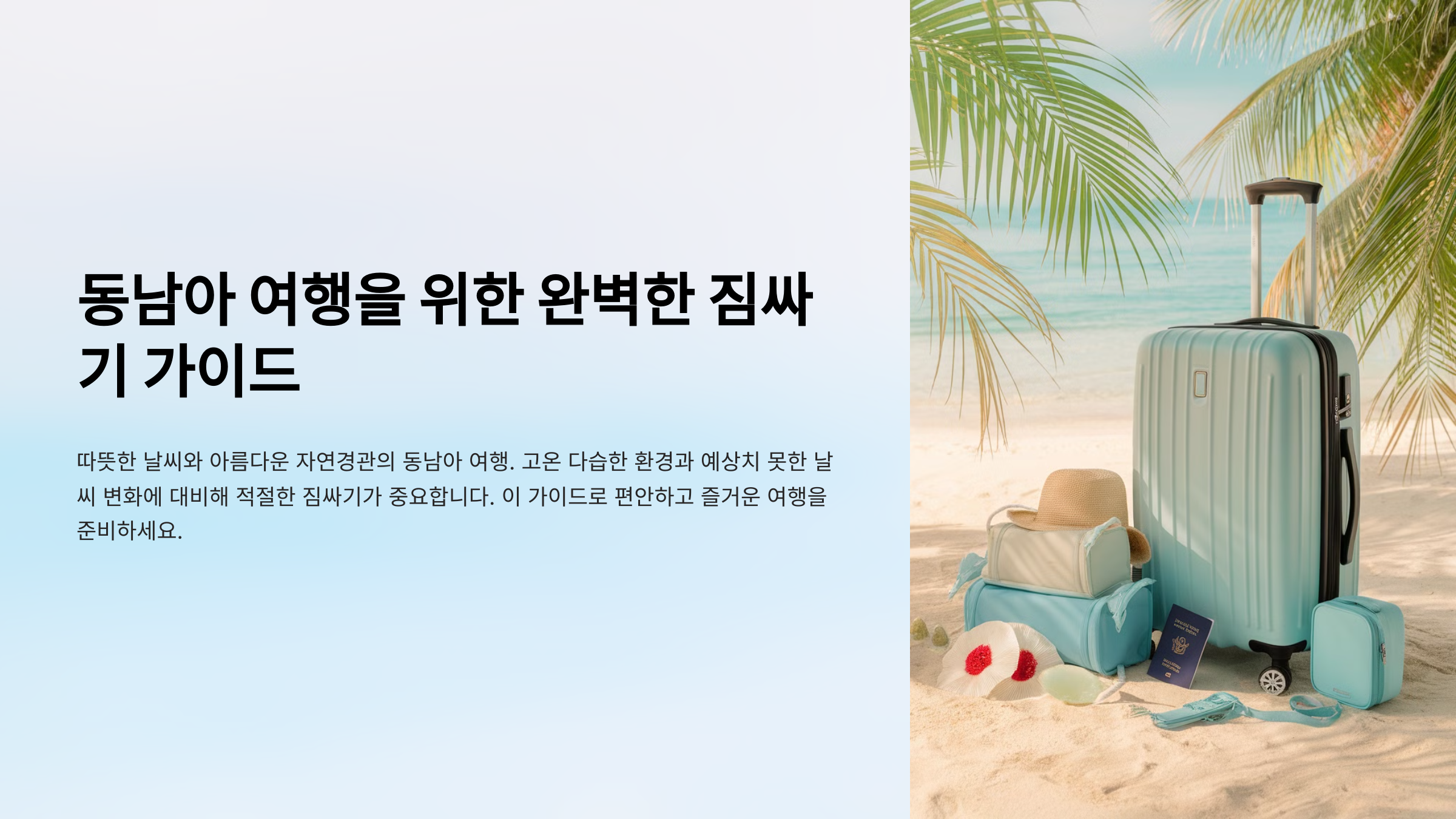 동남아 여행은 따뜻한 날씨와 아름다운 자연경관으로 많은 사람들에게 인기 있는 여행지입니다. 하지만 고온 다습한 환경과 예상치 못한 날씨 변화에 대비해 적절한 짐을 싸는 것이 중요합니다. 이 가이드는 동남아 여행에 꼭 필요한 필수품과 효율적인 짐싸기 팁을 제공하여 편안하고 즐거운 여행을 돕습니다.