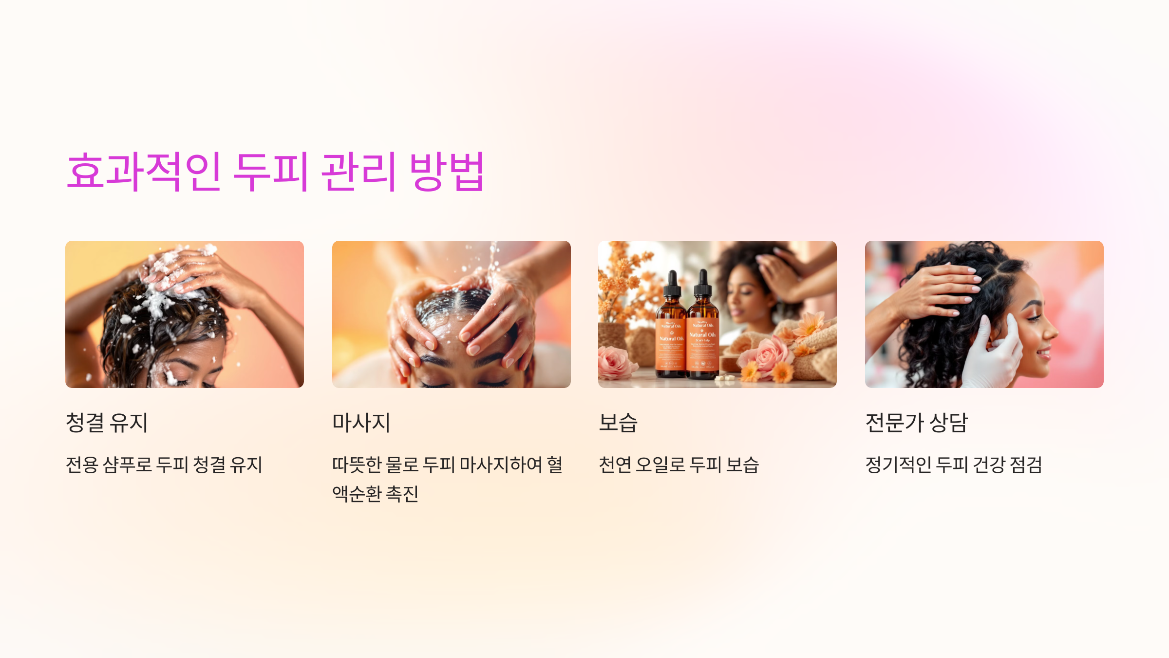 두피를 문지르지 말고 부드럽게 다루는 것이 중요합니다.