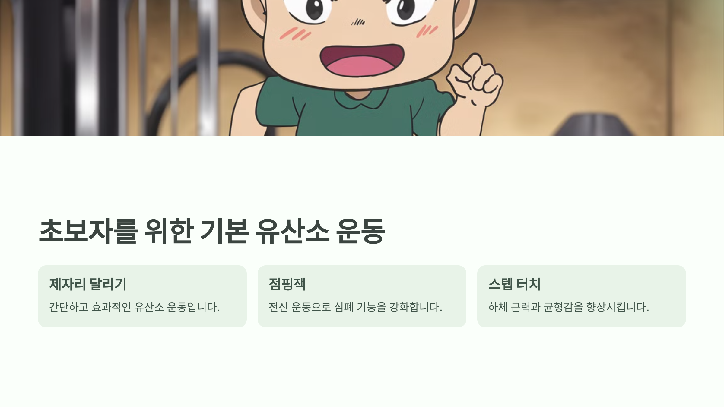초보자는 제자리 달리기, 점핑잭, 스텝 터치 등 간단한 동작으로 시작하세요.