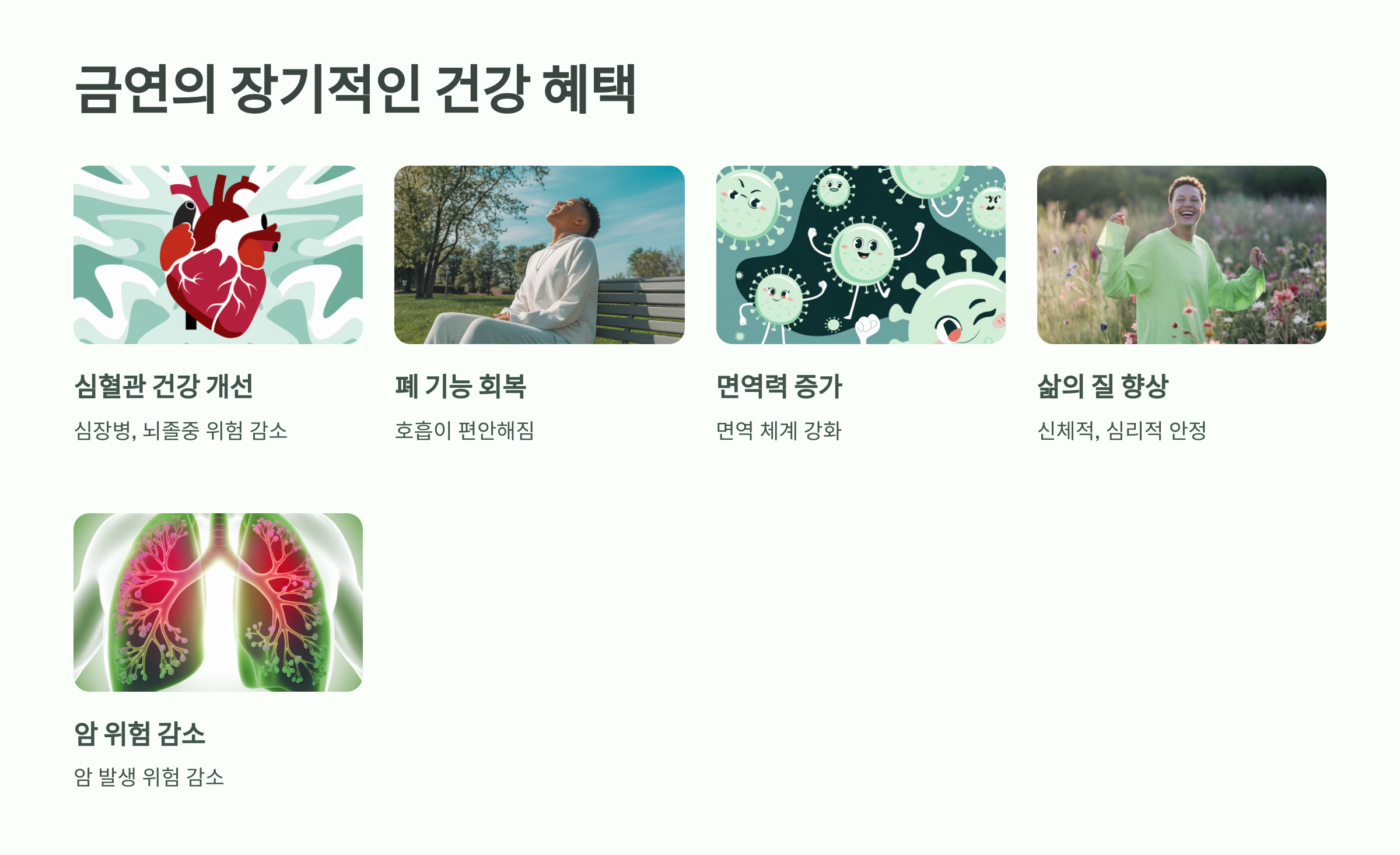 면역력 증가: 금연은 신체의 면역 체계를 강화시킵니다.
