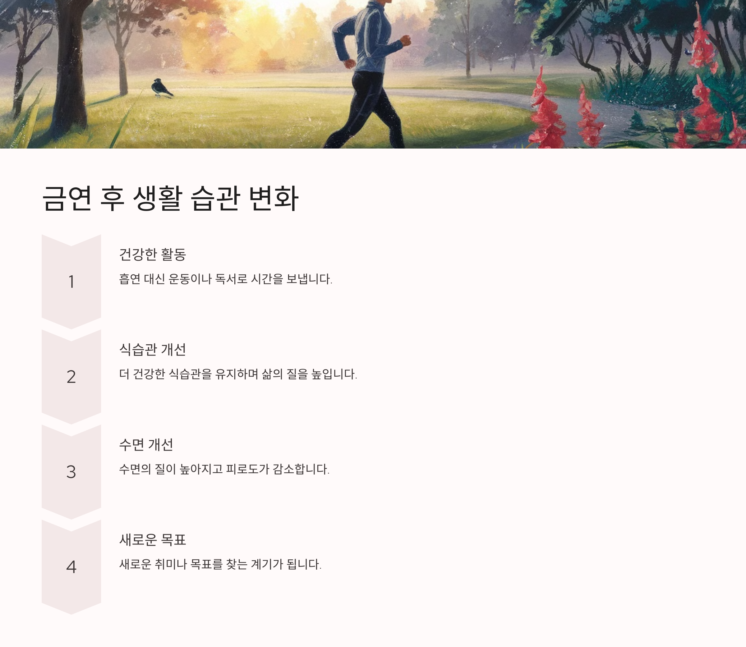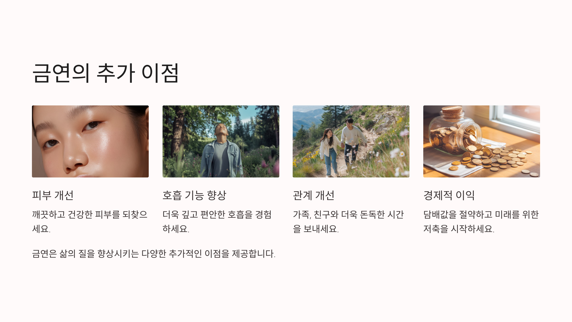 금연은 몸뿐만 아니라 전반적인 삶의 질을 향상시키는 중요한 변화입니다.