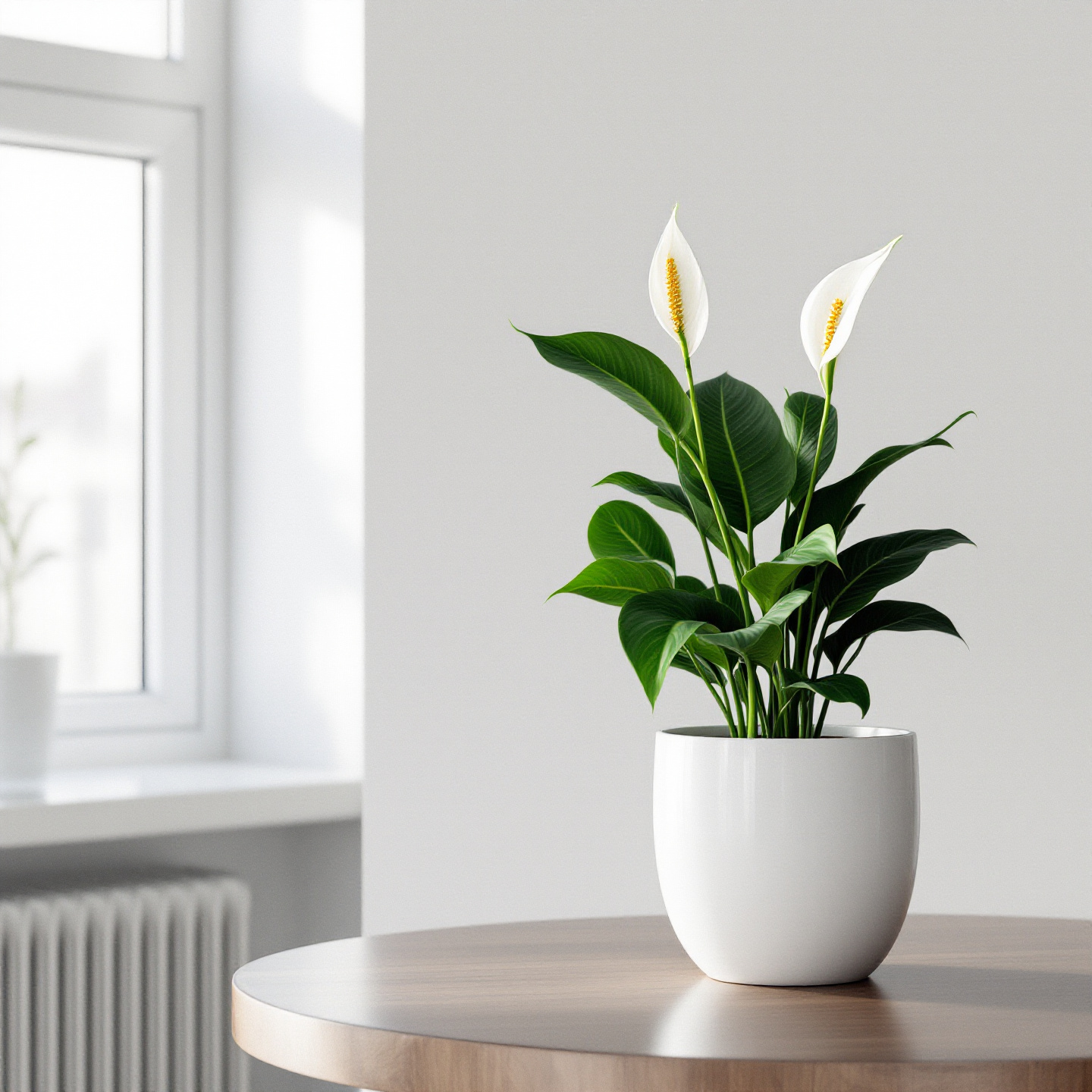 스파티필럼은 실내 환경에 활력을 불어넣으며, 꽃이 피는 동안 특별한 장식을 더합니다.