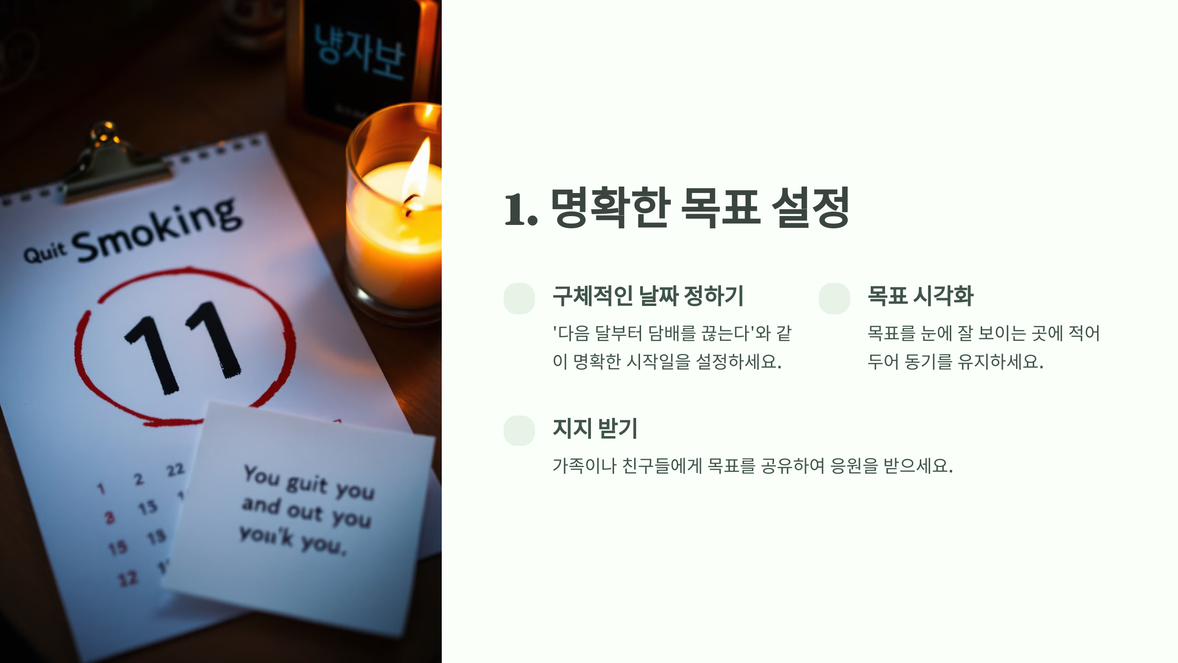 명확한 목표 설정은 금연 성공을 위한 첫걸음입니다.