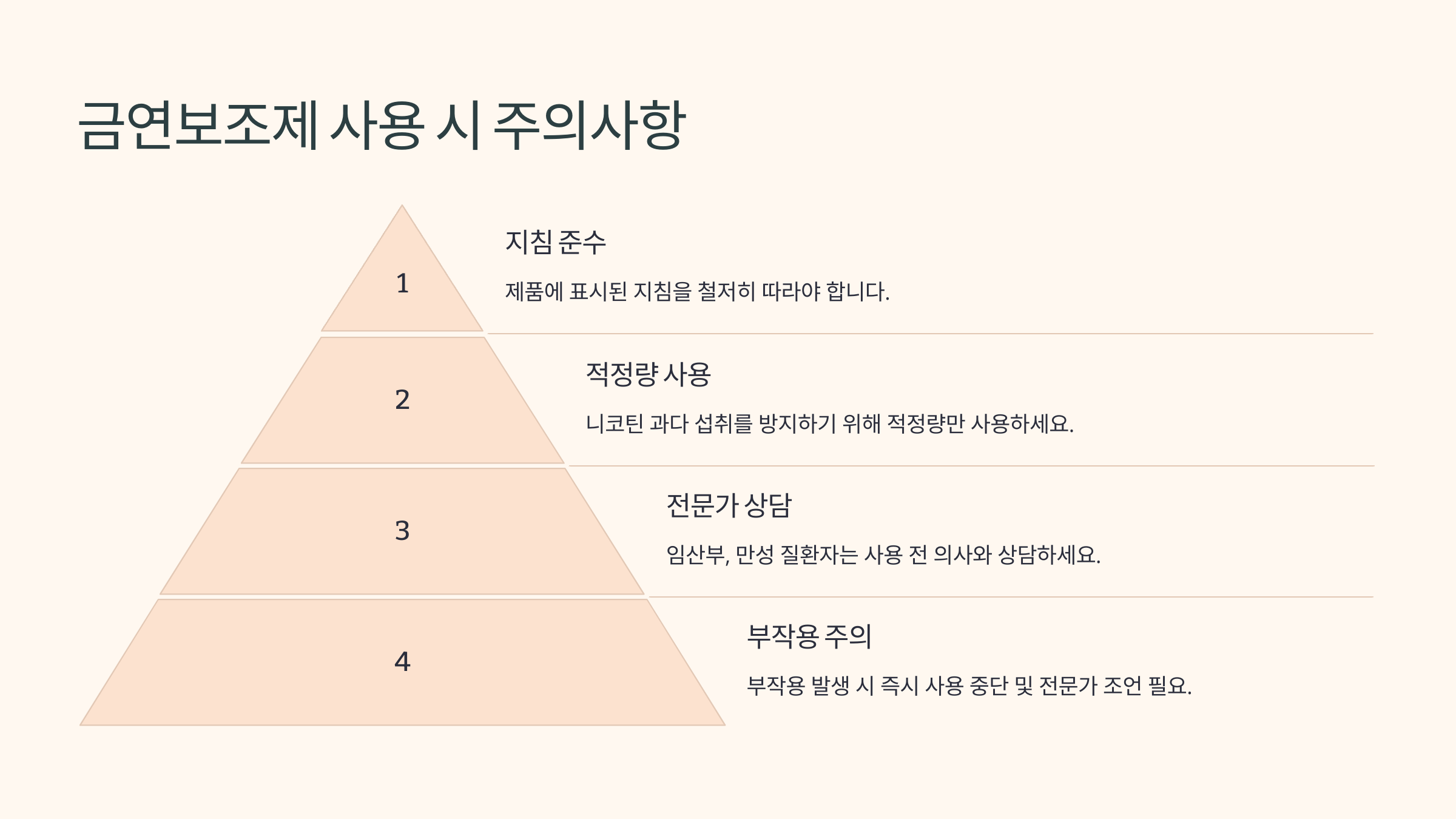 금연보조제를 사용할 때는 제품에 표시된 지침을 철저히 따라야 합니다.
