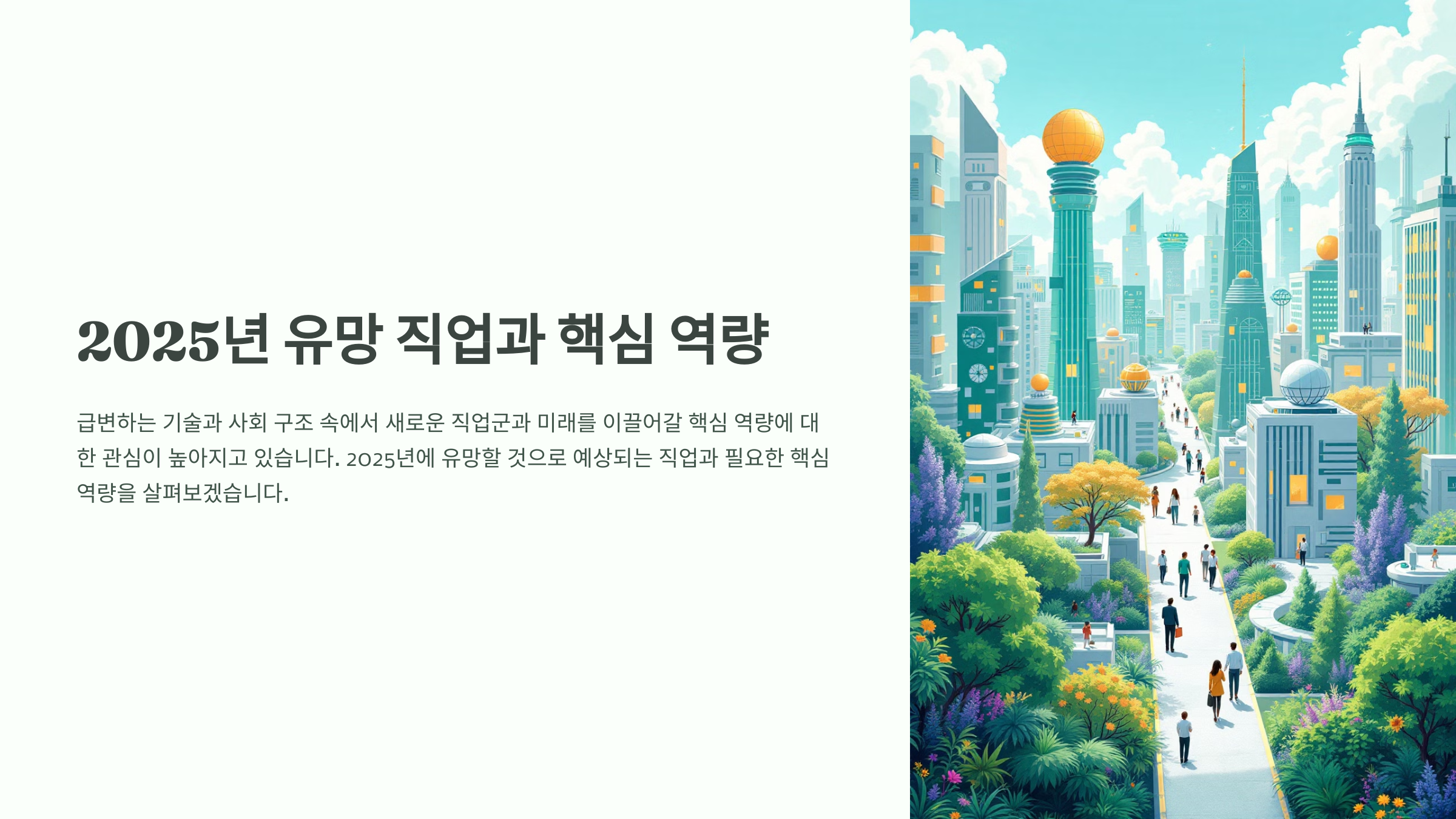 다가오는 2025년, 급변하는 기술과 사회 구조 속에서 새로운 직업군과 미래를 이끌어갈 핵심 역량에 대한 관심이 높아지고 있습니다. 본 글에서는 2025년에 유망할 것으로 예상되는 직업과 함께, 이를 준비하기 위해 필요한 핵심 역량에 대해 심도 깊게 다루어보겠습니다.