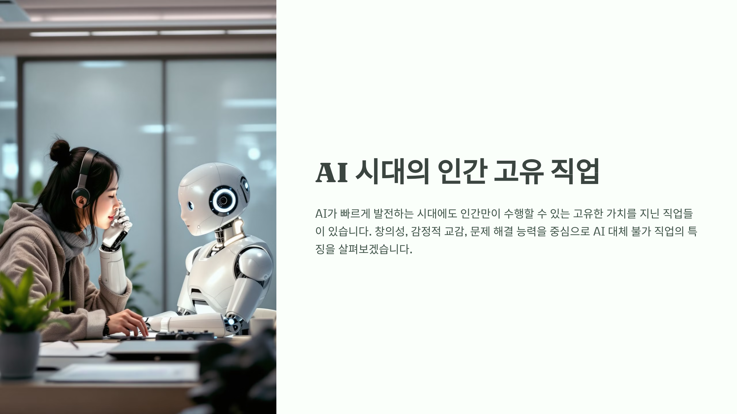 창의성, 감정적 교감, 문제 해결 능력이 대체 불가 직업의 핵심 조건입니다.