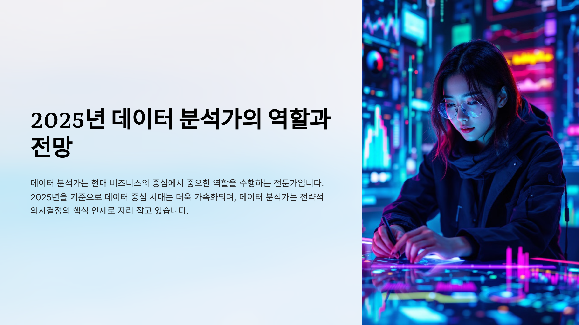2025년 데이터 분석은 전 세계 산업의 핵심 요소로 자리 잡을 것으로 예상됩니다.