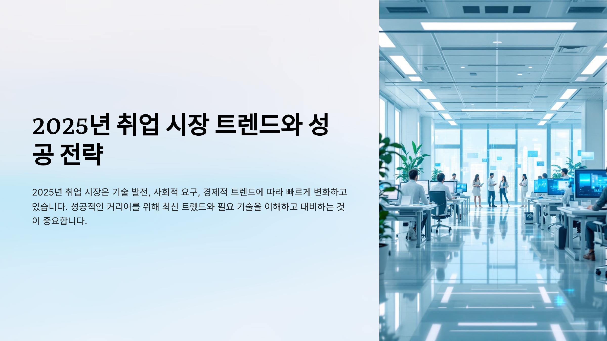 2025년, 취업 시장은 빠르게 변화하며 기술 발전, 사회적 요구, 경제적 트렌드에 따라 새로운 방향성을 보여주고 있습니다. 성공적인 커리어를 위해서는 최신 트렌드와 필요 기술을 이해하고 대비하는 것이 중요합니다. 본 글에서는 2025년 취업 시장을 주도할 주요 트렌드와 이에 따른 성공 전략을 심도 있게 분석합니다.